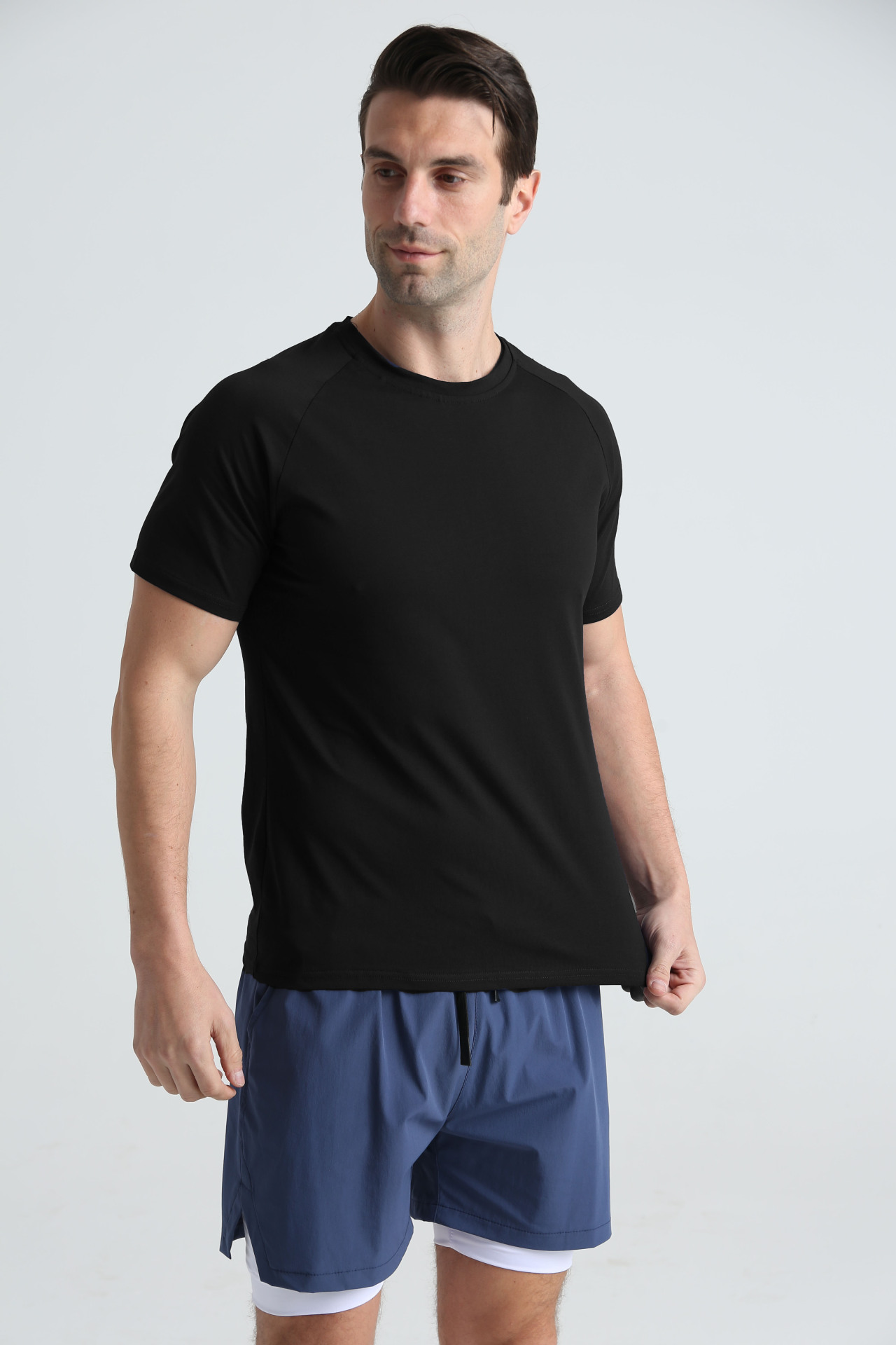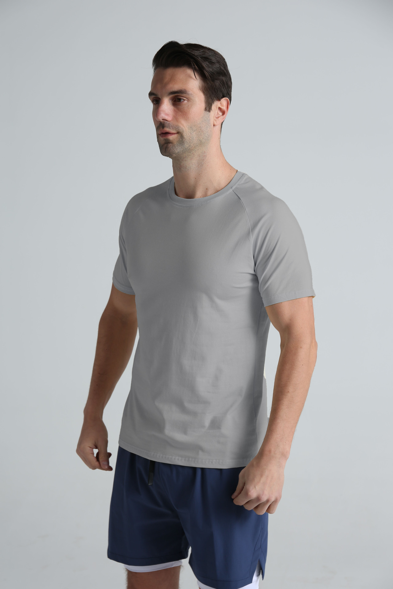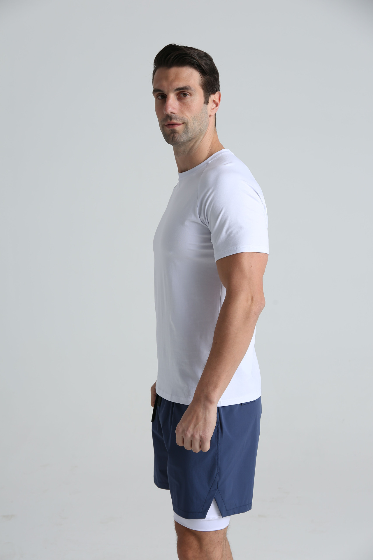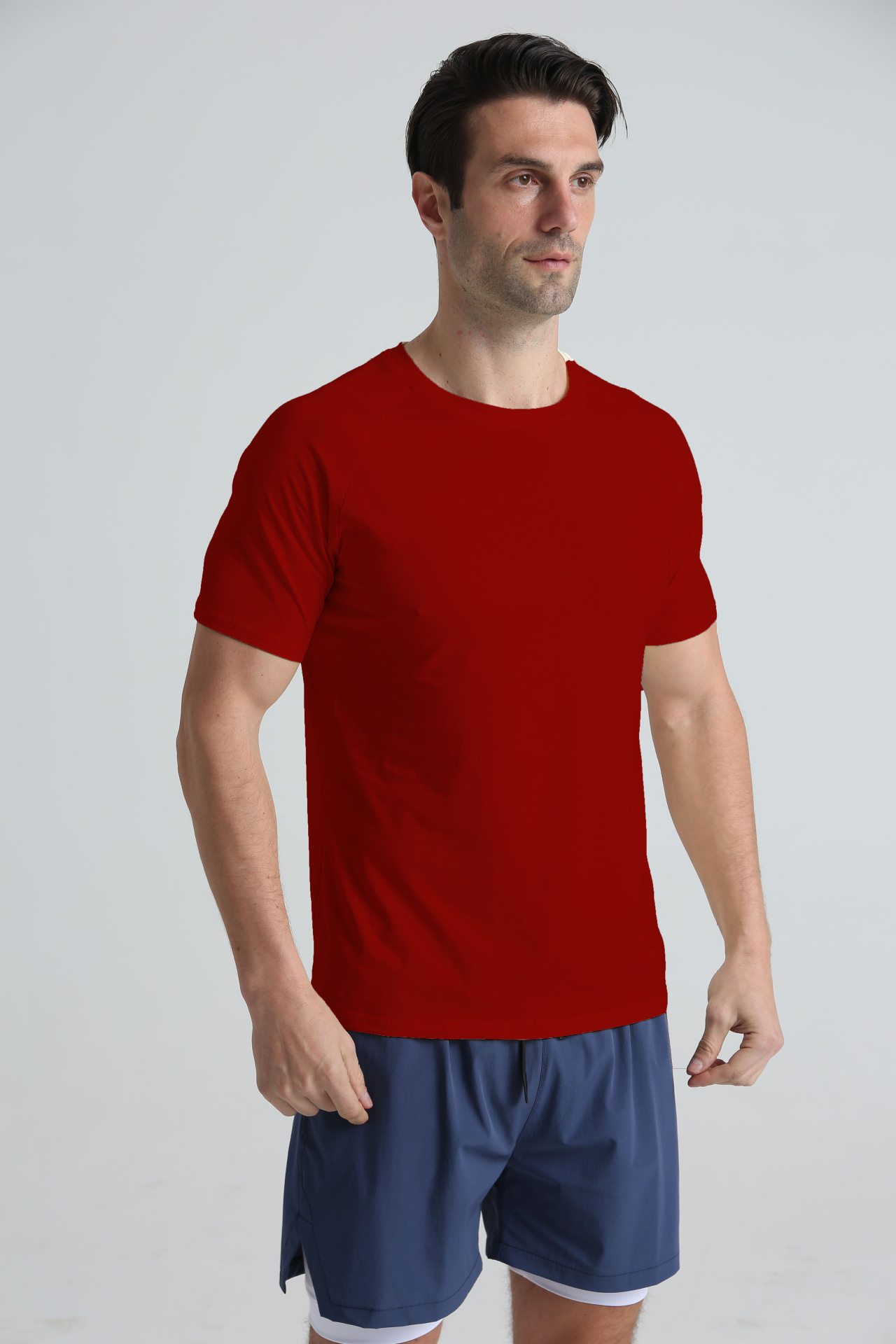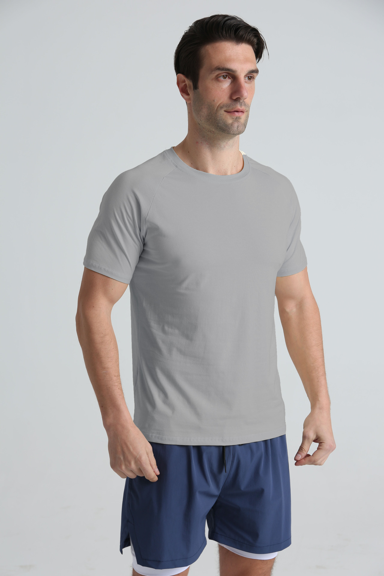 Летняя Европейская и американская спортивная мужская хлопковая однотонная Повседневная футболка больших размеров с короткими рукавами и круглым вырезом для тренировок