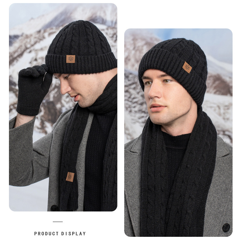 Amazon зимняя шапка мужская вязаная утолщенная шапка шарф перчатки женский костюм-тройка морозостойкие теплые перчатки для мужчин
