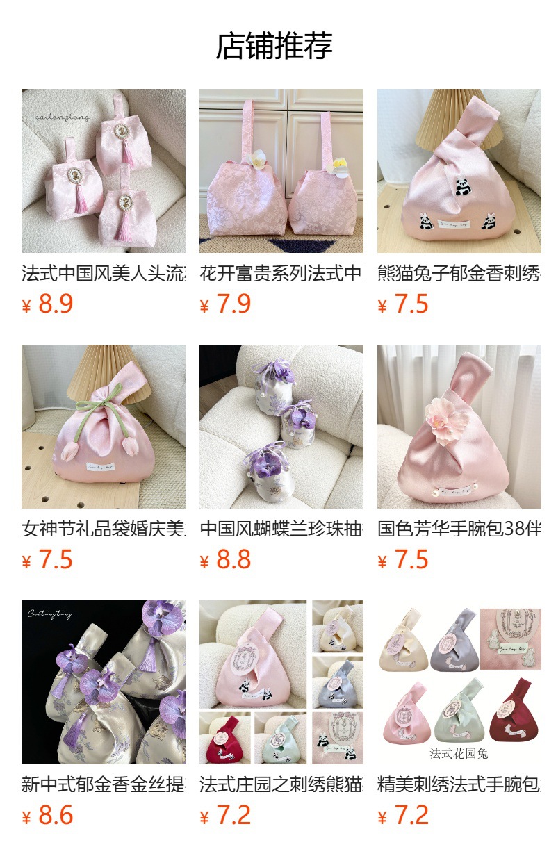 此款手腕袋不仅是礼品袋,平日也可用于搭配新中式衣服的手腕包的使用。