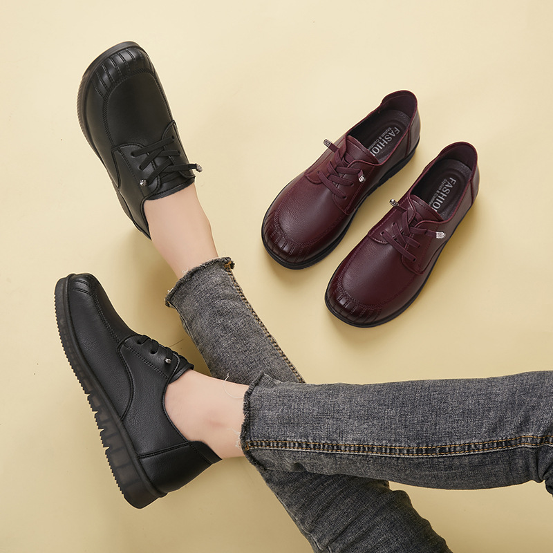 Женская обувь на флисовой подкладке, теплая осенне-зимняя новая обувь для мам на говяжьей подошве для среднего и пожилого возраста, обувь для мам на мягкой подошве, удобная повседневная Маленькая кожаная обувь для женщин