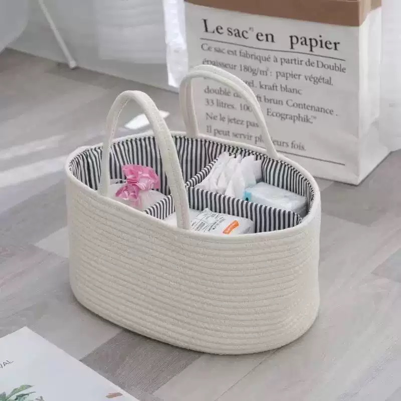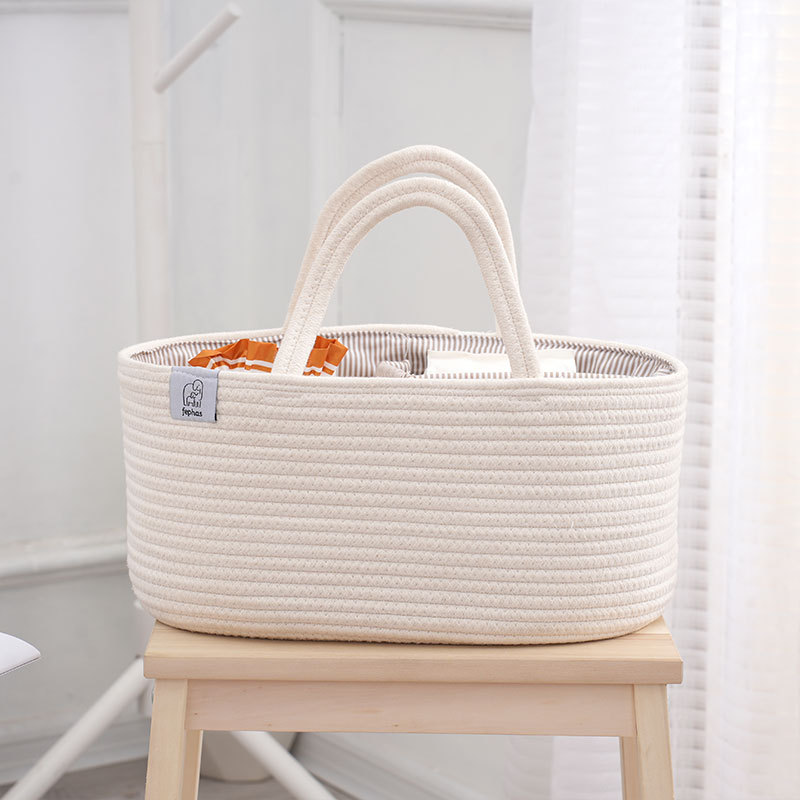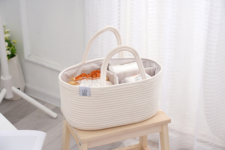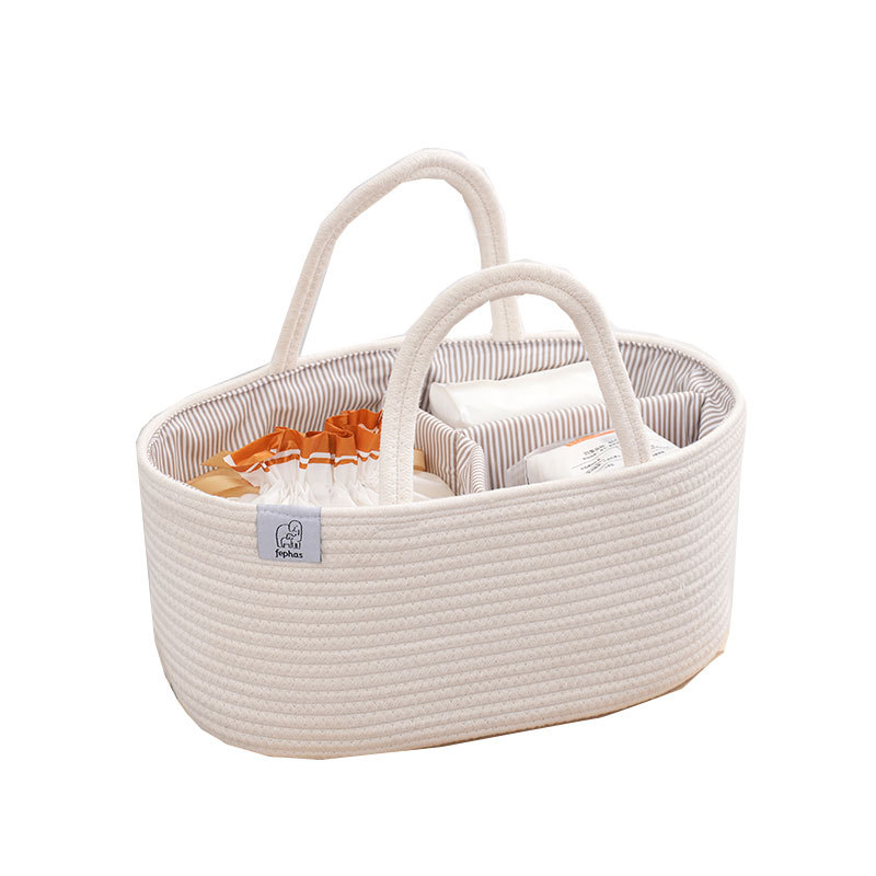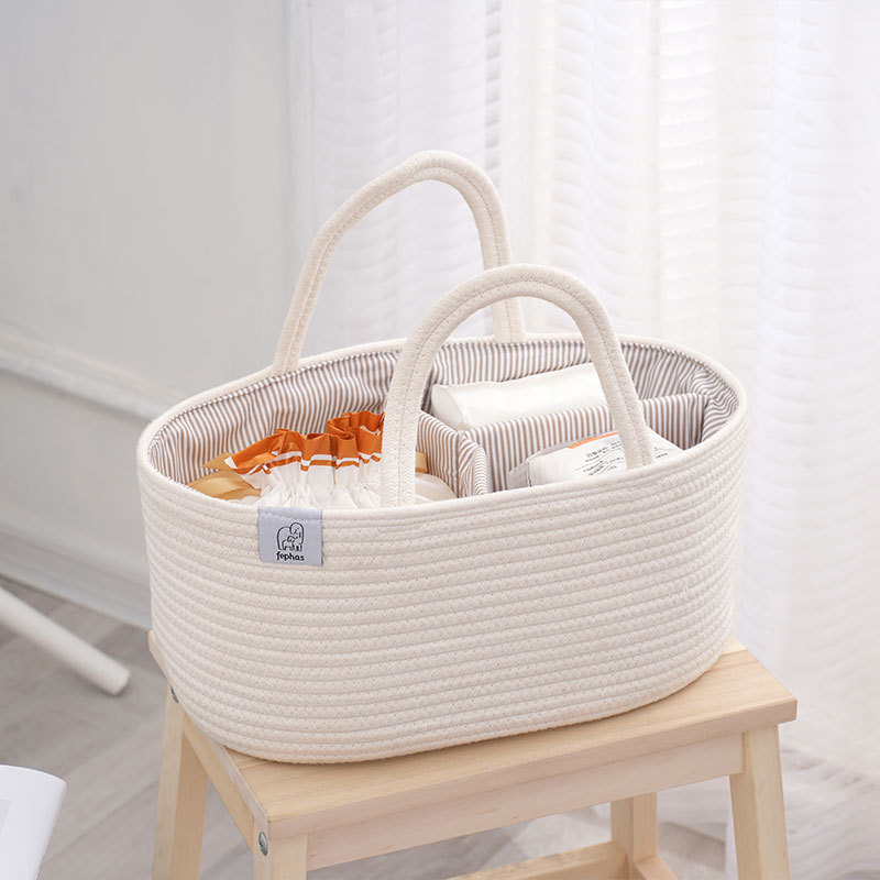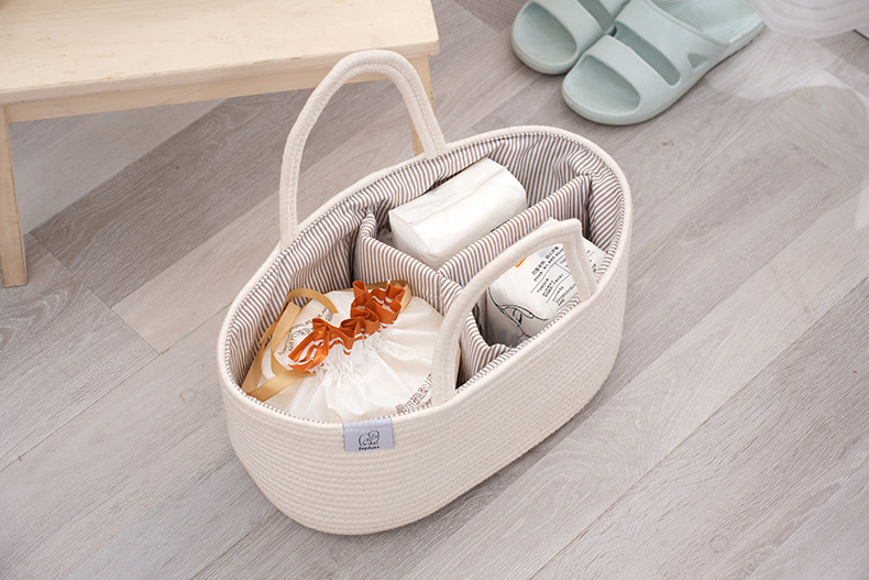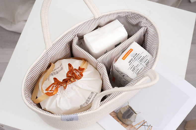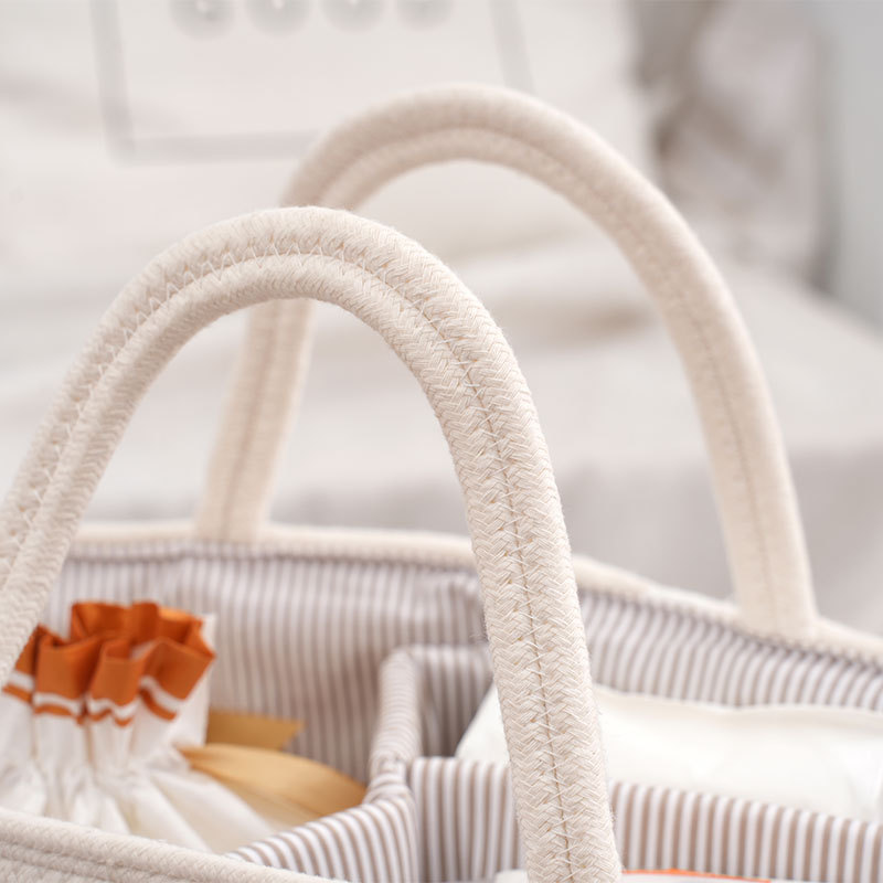 Плетеная корзина для хранения детских принадлежностей из хлопкового каната, многофункциональная, с отделениями для мамы и малыша, оптом, сумочка для детских бутылочек.