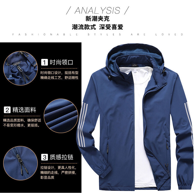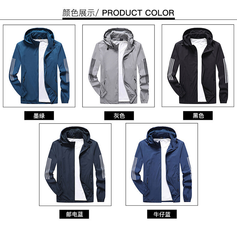 Куртка большого размера, ветровка с капюшоном, тонкая мужская куртка для весны и осени, ветровка для занятий спортом на открытом воздухе, мужская съемная куртка для бега.