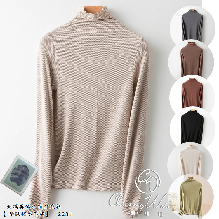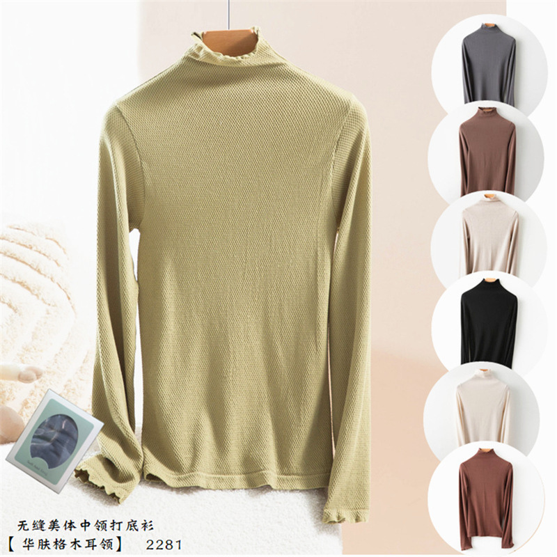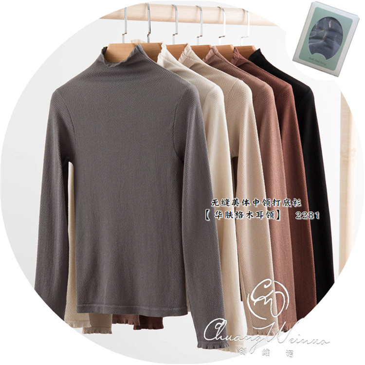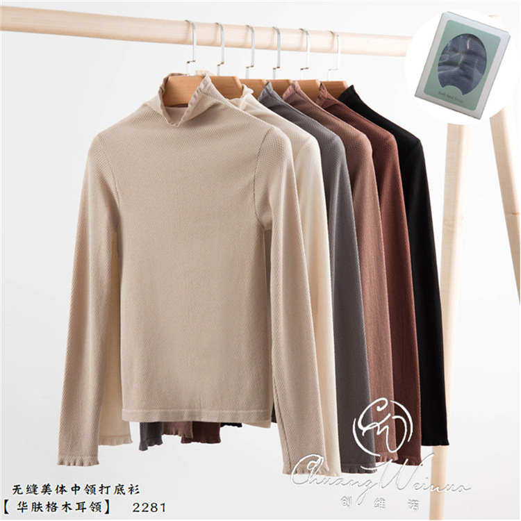 22 Внешняя торговля нижняя рубашка женская новая форма тела тонкая Универсальная форма тела нижнее белье с длинным рукавом деревянный ушной воротник осенняя одежда 2281