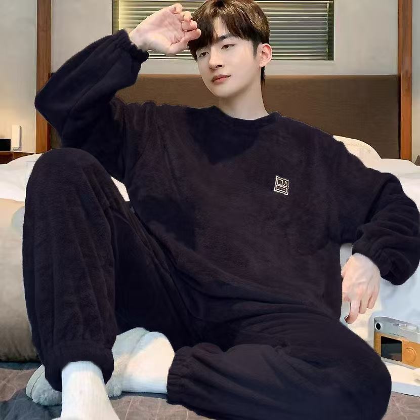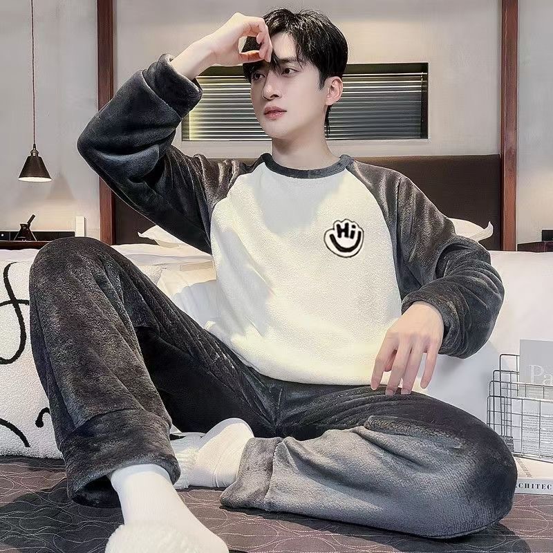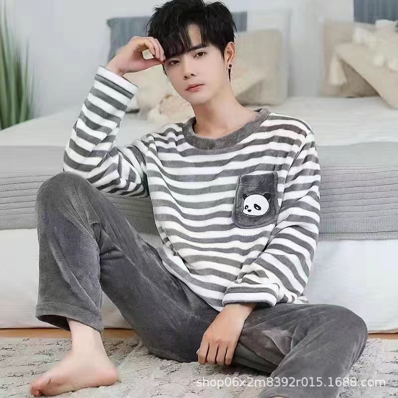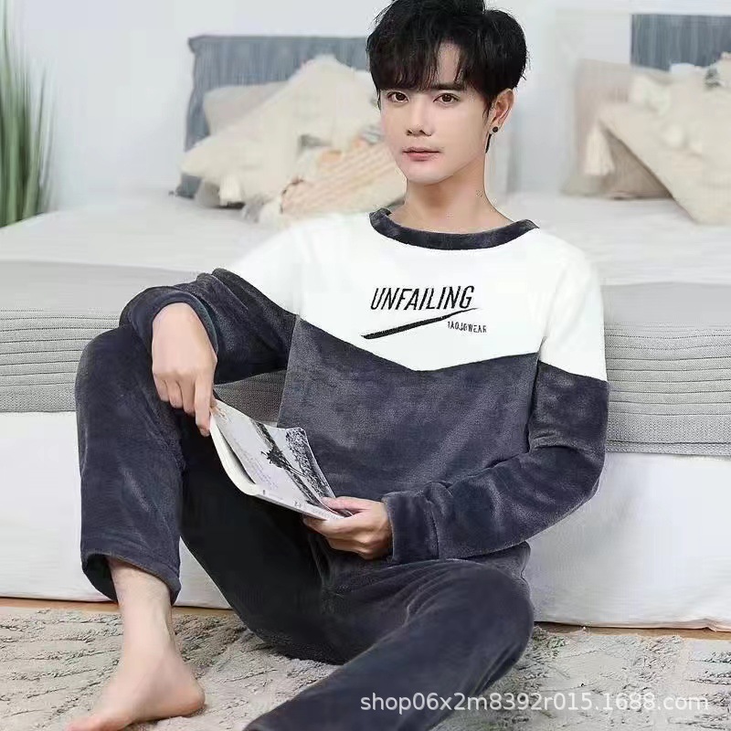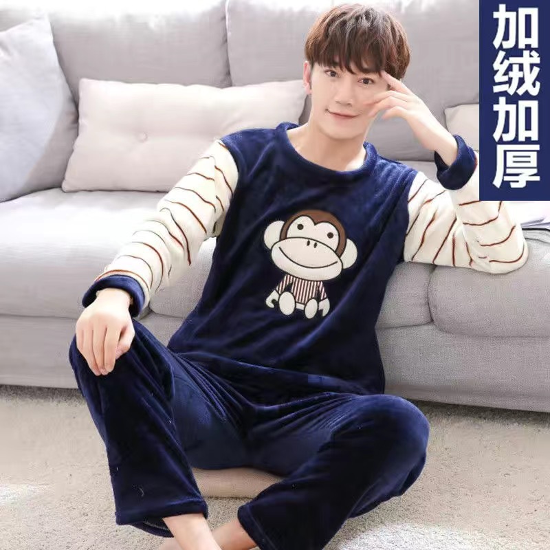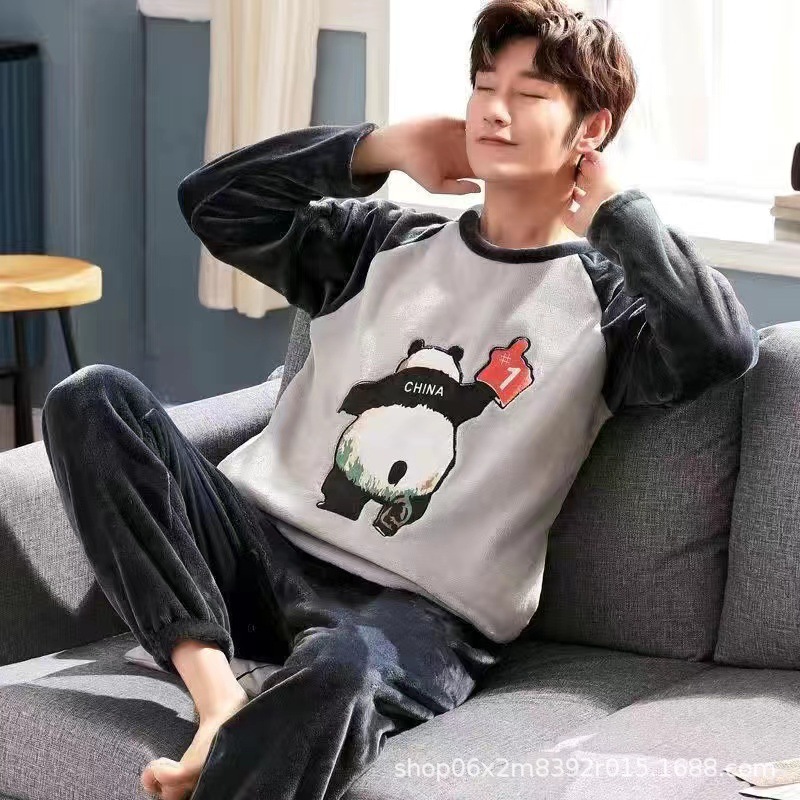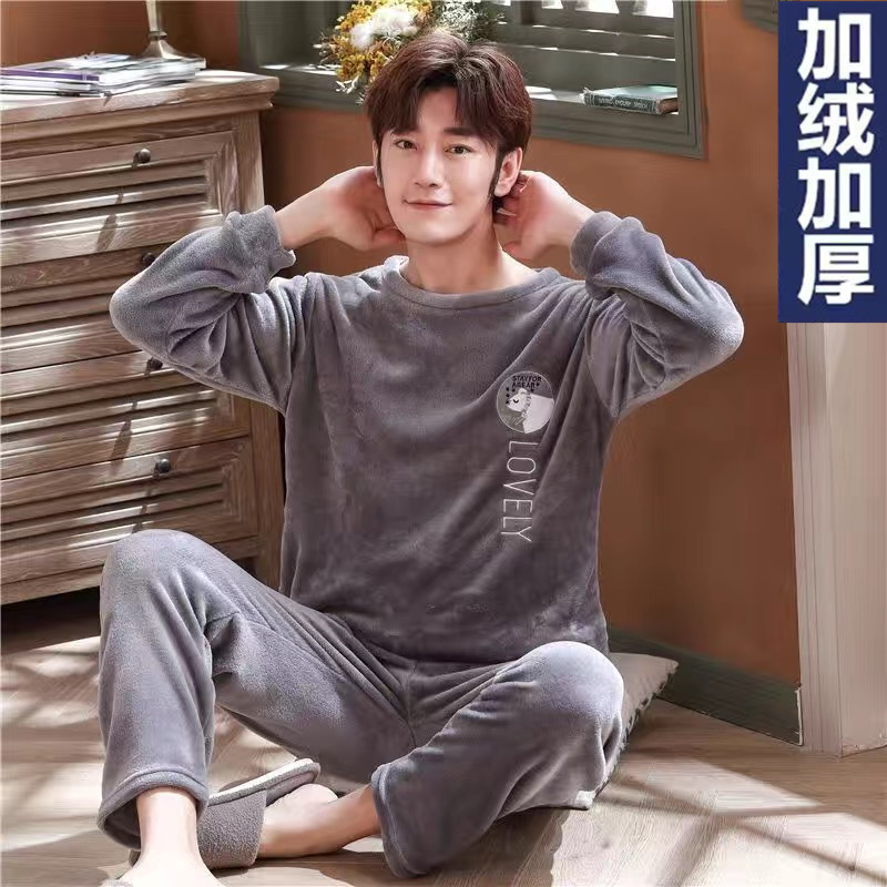 Зимняя свободная Толстая Фланелевая пижама на флисовой подкладке, Мужской осенне-зимний костюм, Мужская домашняя одежда больших размеров из кораллового флиса