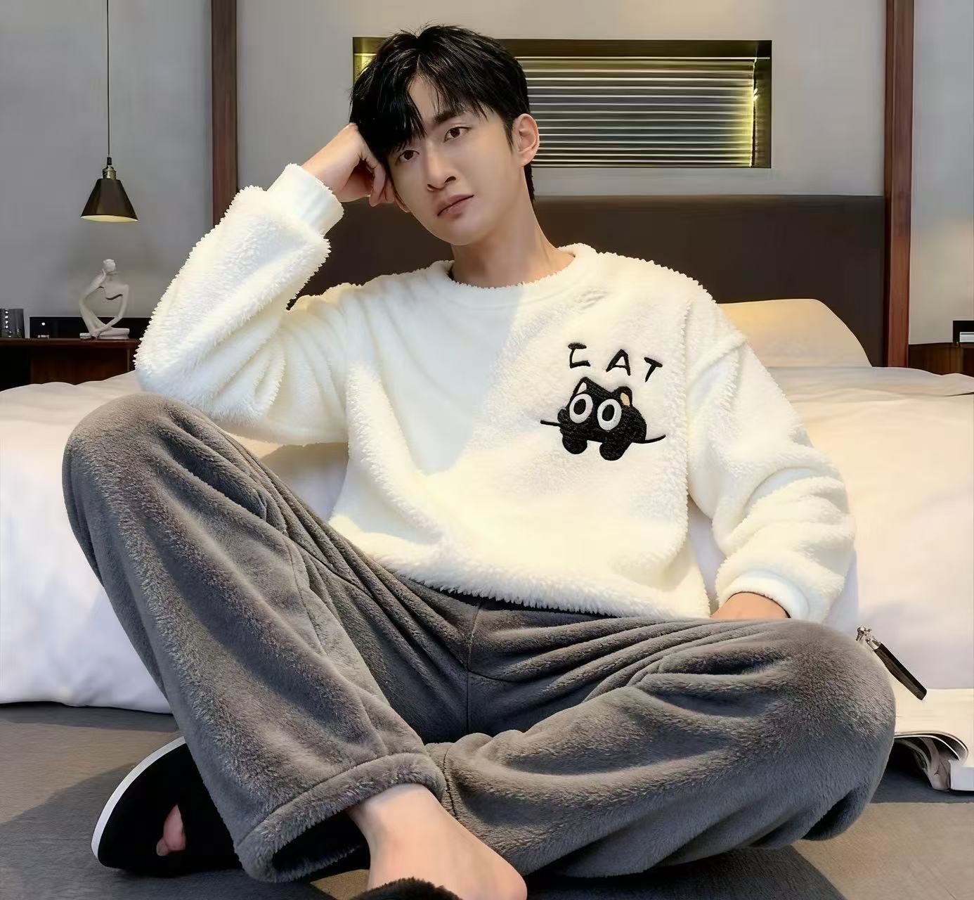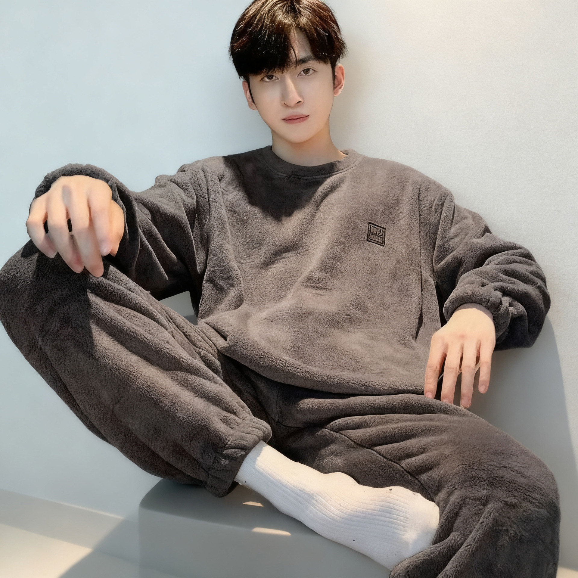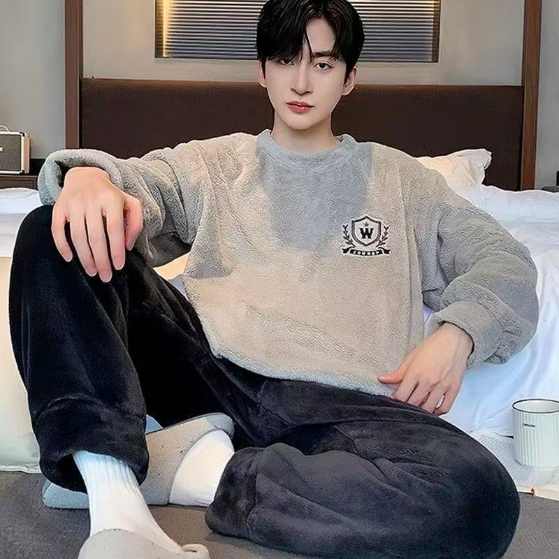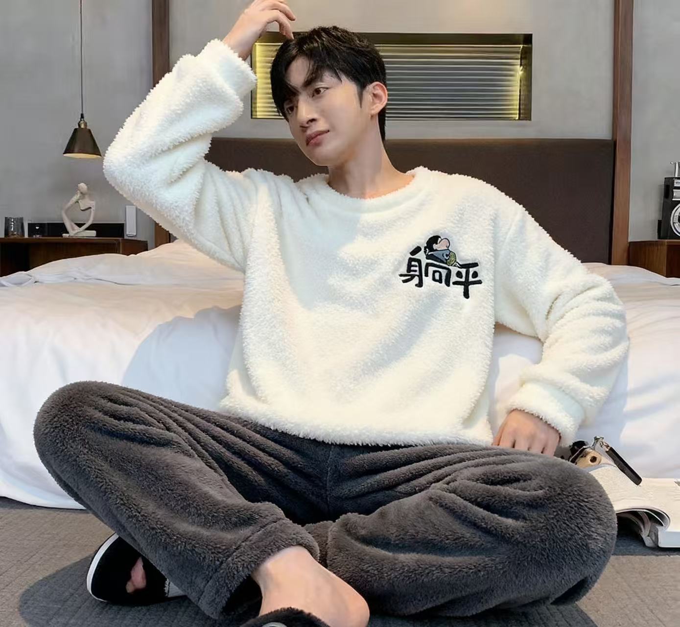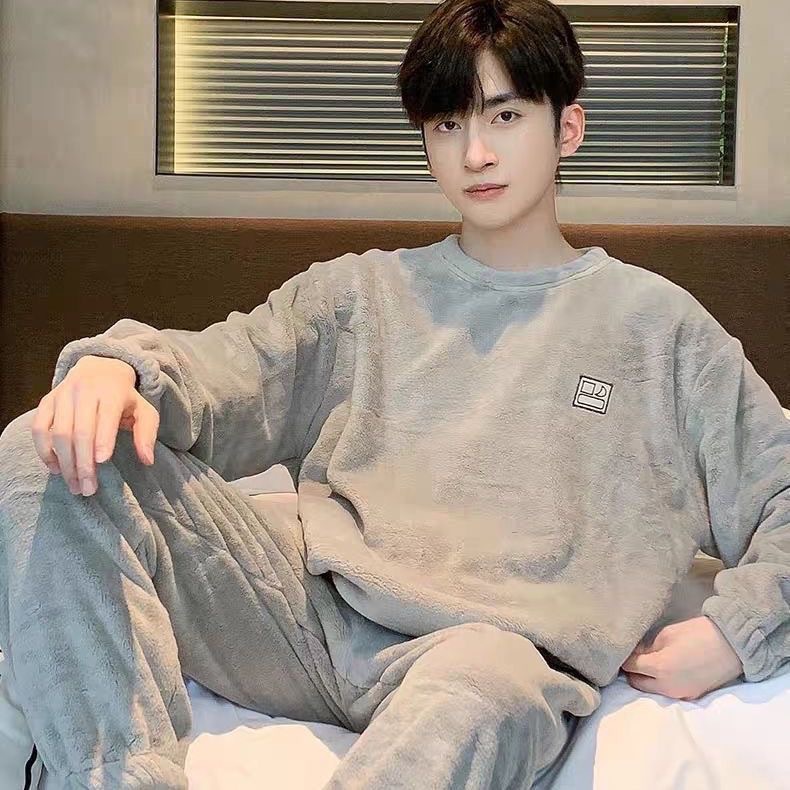 Зимняя свободная Толстая Фланелевая пижама на флисовой подкладке, Мужской осенне-зимний костюм, Мужская домашняя одежда больших размеров из кораллового флиса