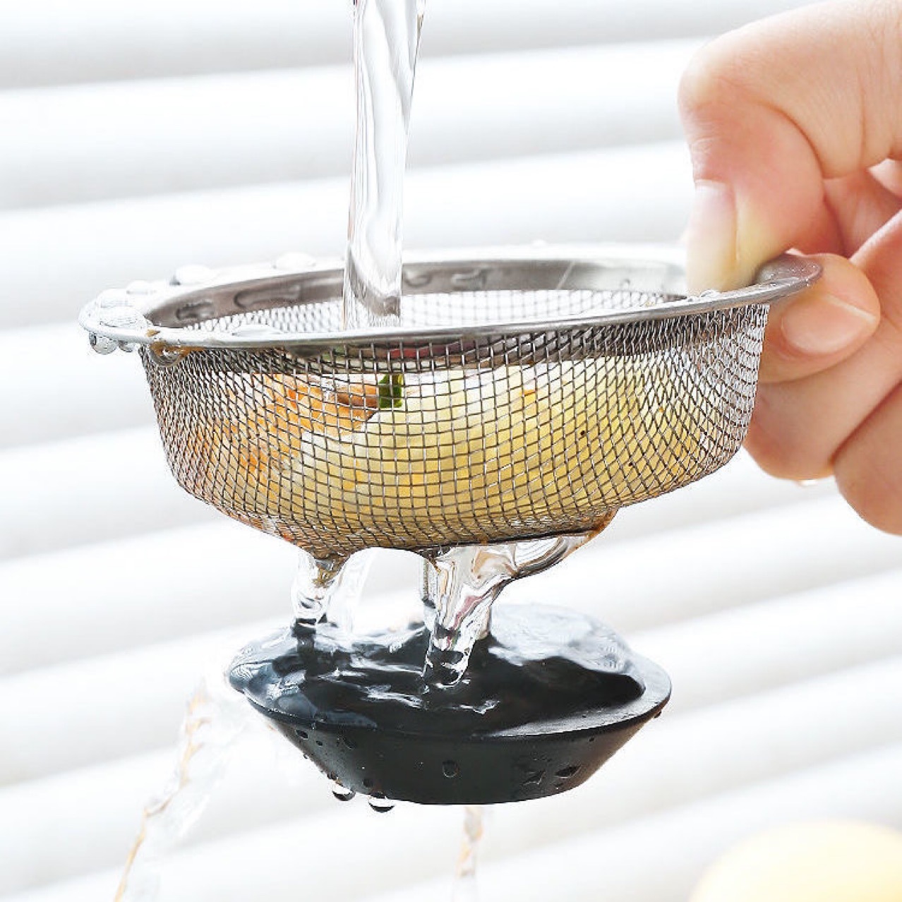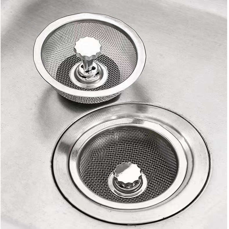 Сетчатый фильтр для кухонной раковины, ситечко из нержавеющей стали для мытья посуды, сетка для слива с пробкой для предотвращения засоров.