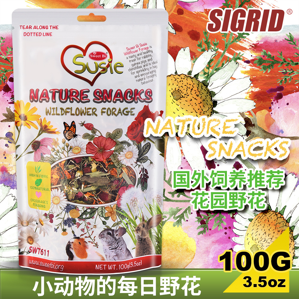 Сладкий Би Ежедневный Питательный Корм для Зайцев, Шиншилл и Морских Попугаев с Дикими Цветами 100г
