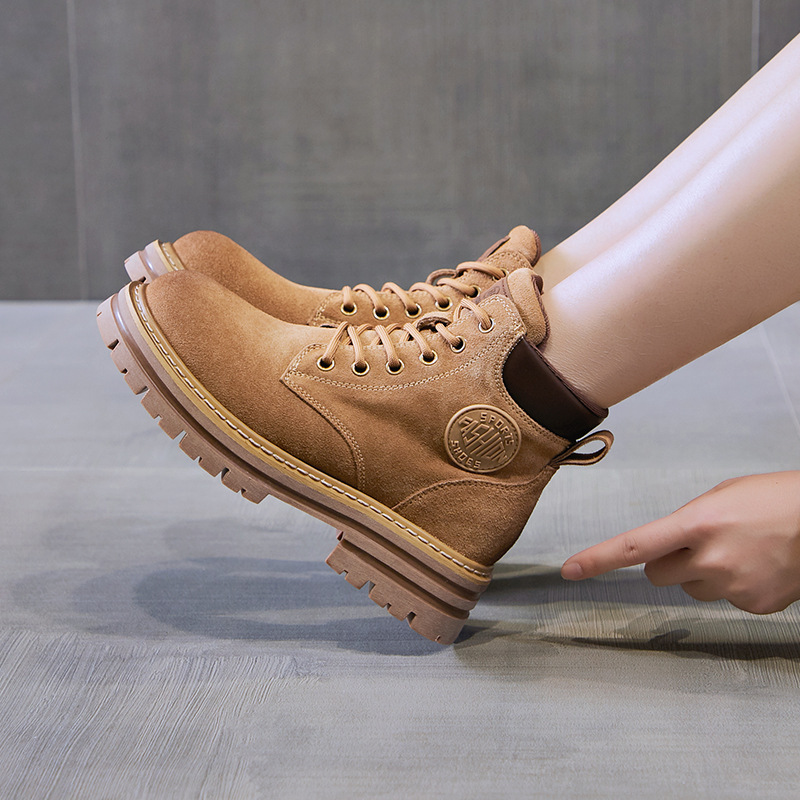 Европейские женские ботинки Мартин на осень 2023 года, короткие женские ботинки в стиле ретро на мягкой подошве, из матовой замши, с мягкой подошвой и эффектом увеличения роста.