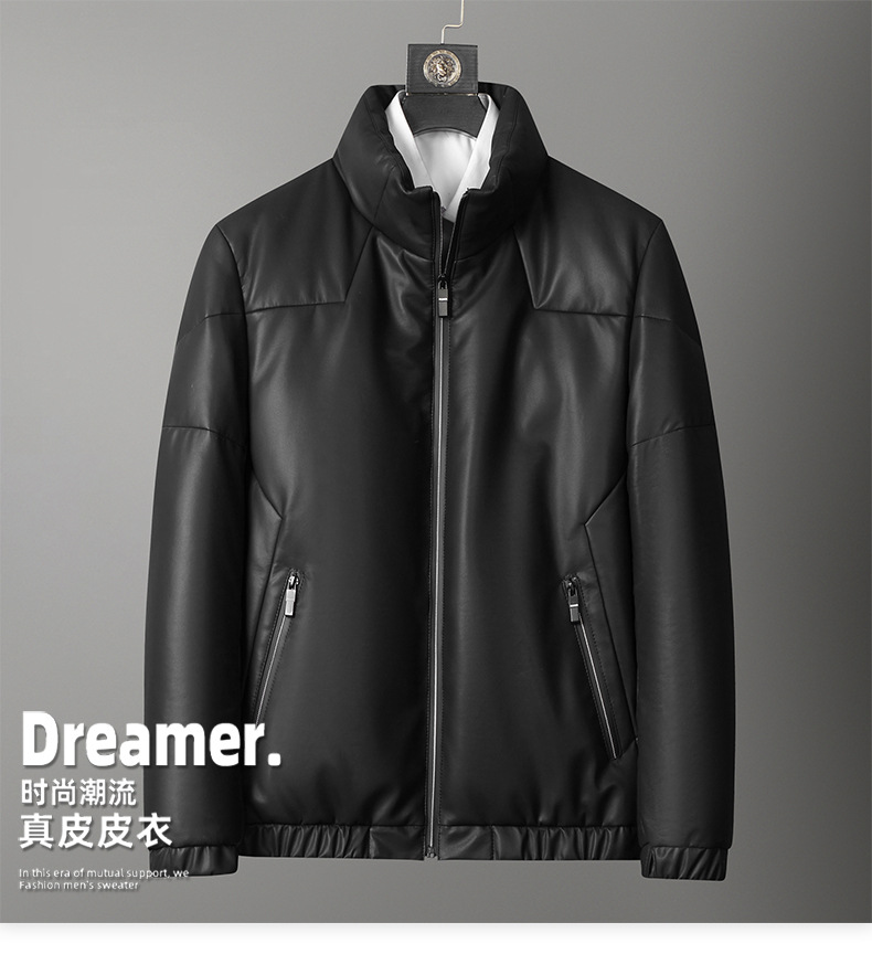 Новый осенне-зимний кожаный пуховик, мужская кожаная куртка из овчины на гусином пуху, утепленная Корейская кожаная куртка