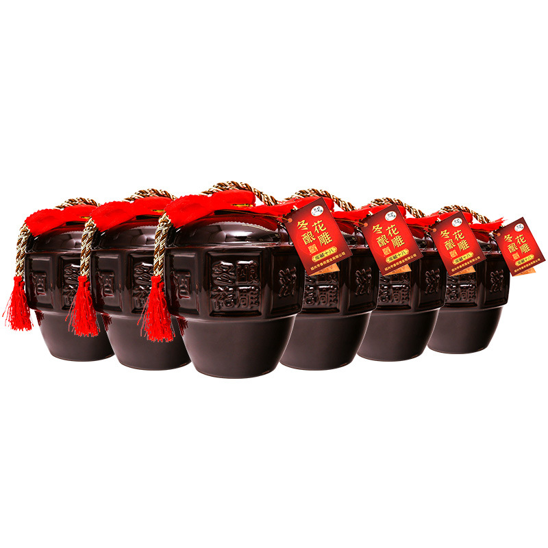 Желтое вино из клейкого риса, выращенное в провинции Чжэцзян, в глиняных кувшинах, 1,5 л, полусухое, 12 градусов, чисто зерновое, ручной работы, оригинальное крепление.