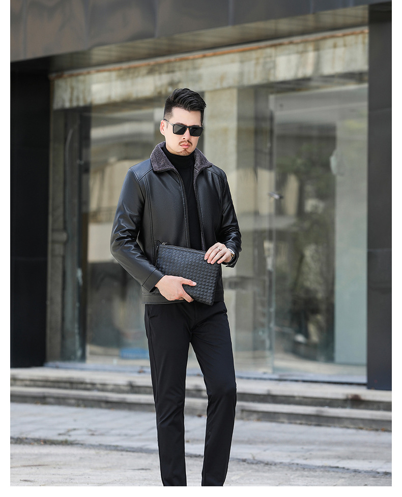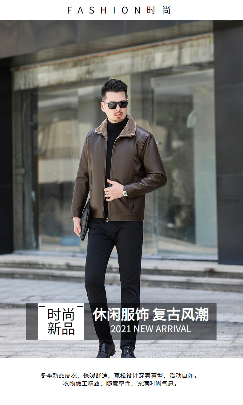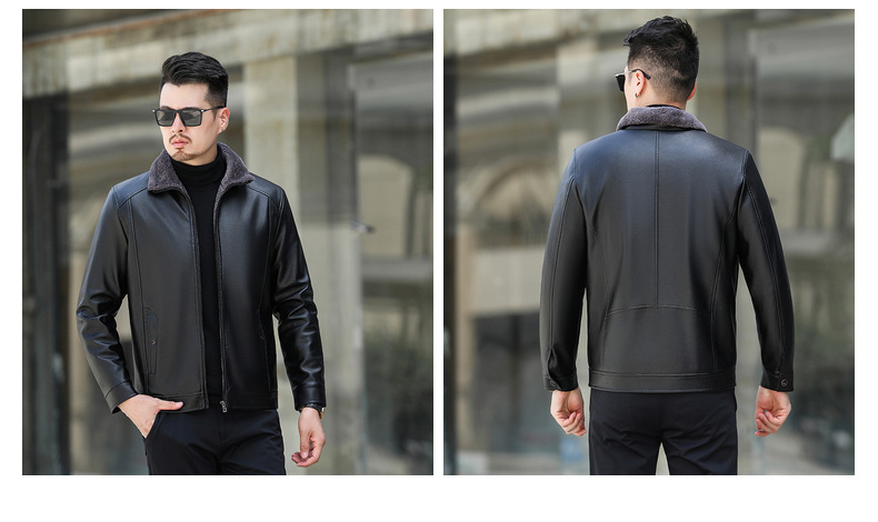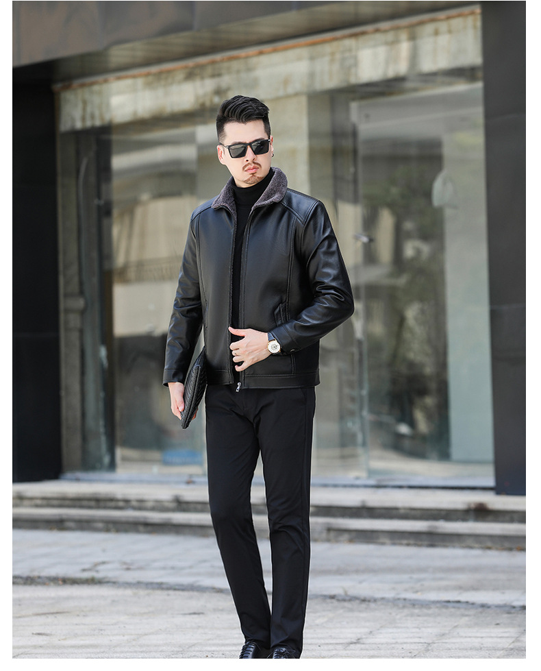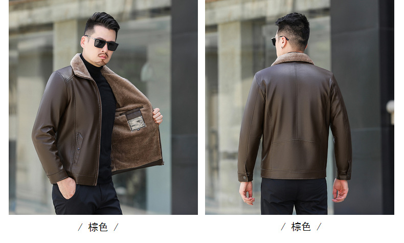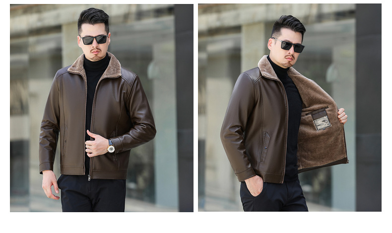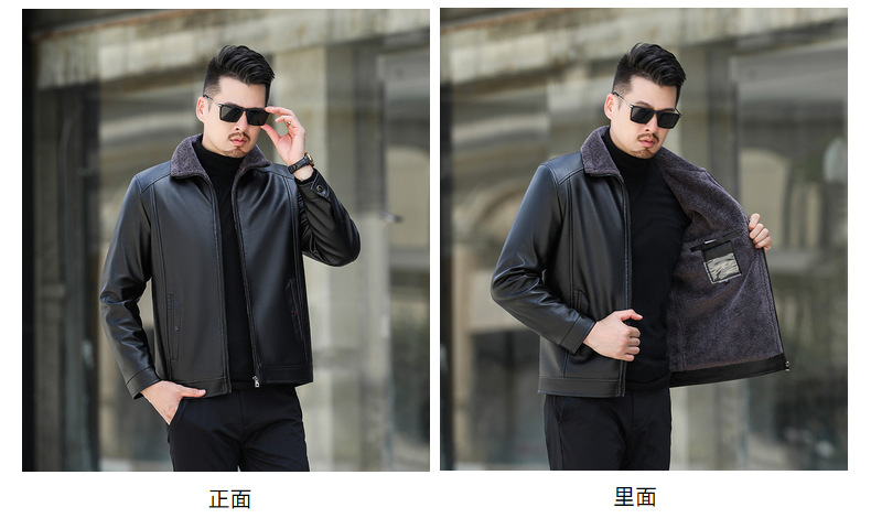 2025 новая кожаная куртка мужская верхняя одежда с мехом мужская верхняя одежда зимняя бархатная утепленная свободная кожаная куртка оптом