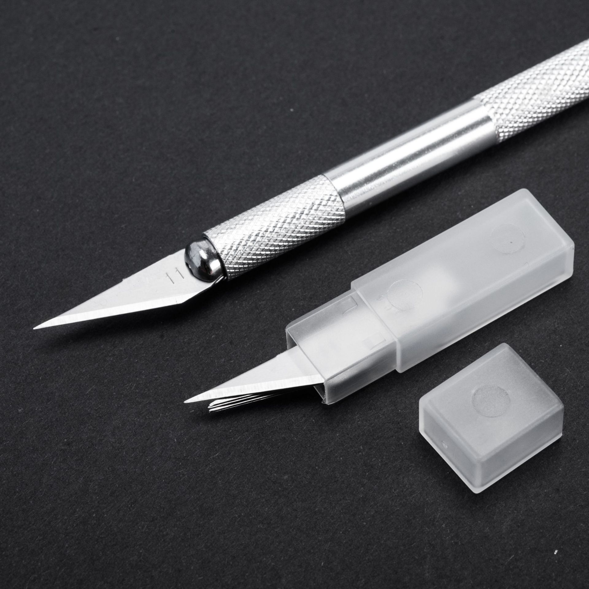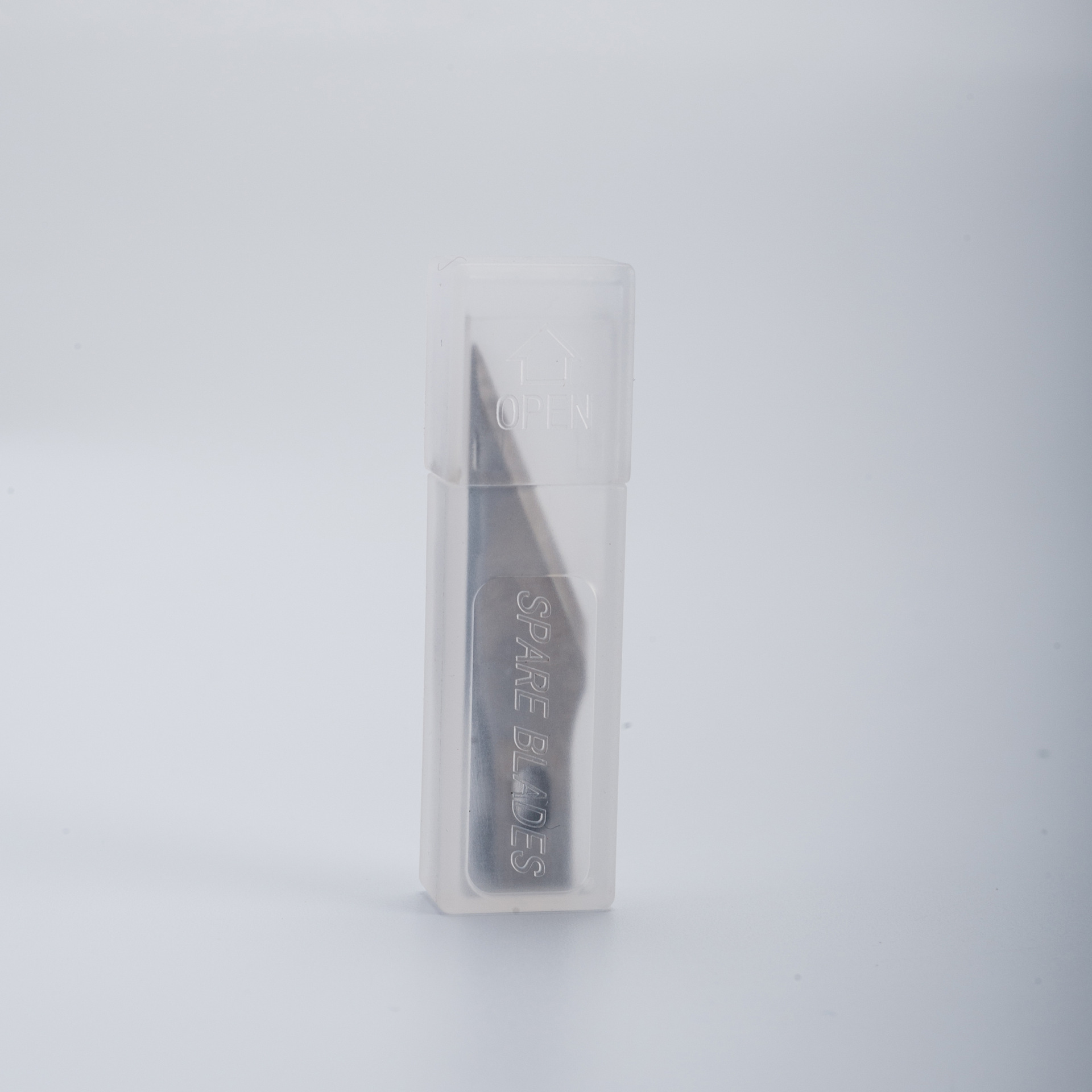 1 нож для резьбы + 5 лезвий (оптом); 1 нож для резьбы + 5 лезвий (в комплекте в полиэтиленовом пакете); 5 лезвий + пластиковая коробка.