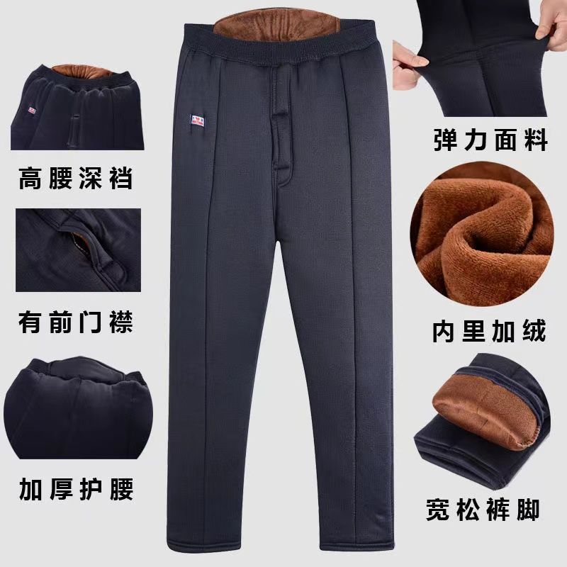 Хлопковые брюки среднего и пожилого возраста носят теплые брюки на флисовой подкладке с толстой завышенной талией, брюки из верблюжьей шерсти, теплые мужские брюки больших размеров оптом