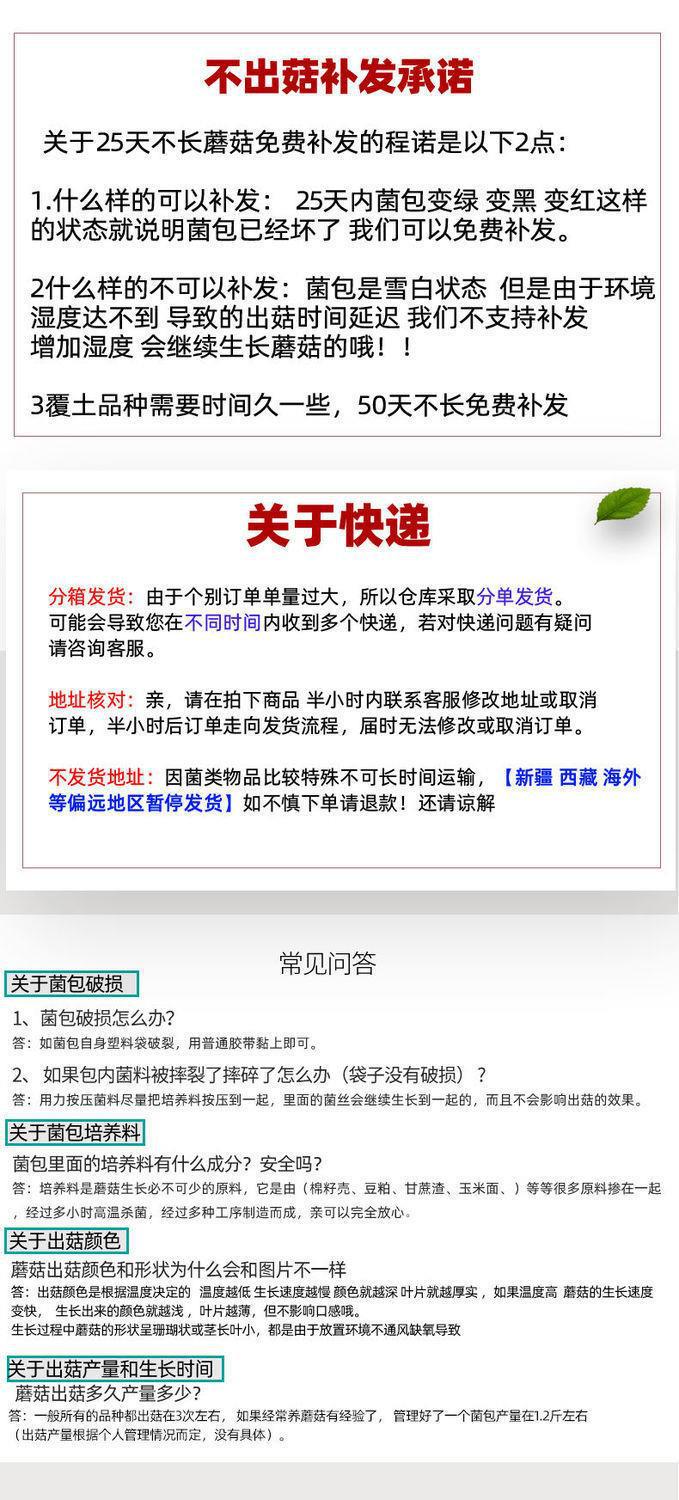 【工厂直销欢迎考察】实力厂家代发 24小时内发货!!!不出包赔 每个菌包重量0.6斤,全部长满菌丝再发货,质量放心!!!!!正常区域1公斤内快递费为2.6元,拍的过程中推荐单包在不同链接下单,(一包专拍链接)这样可以避免运费多付。