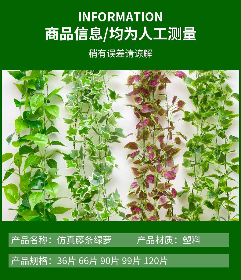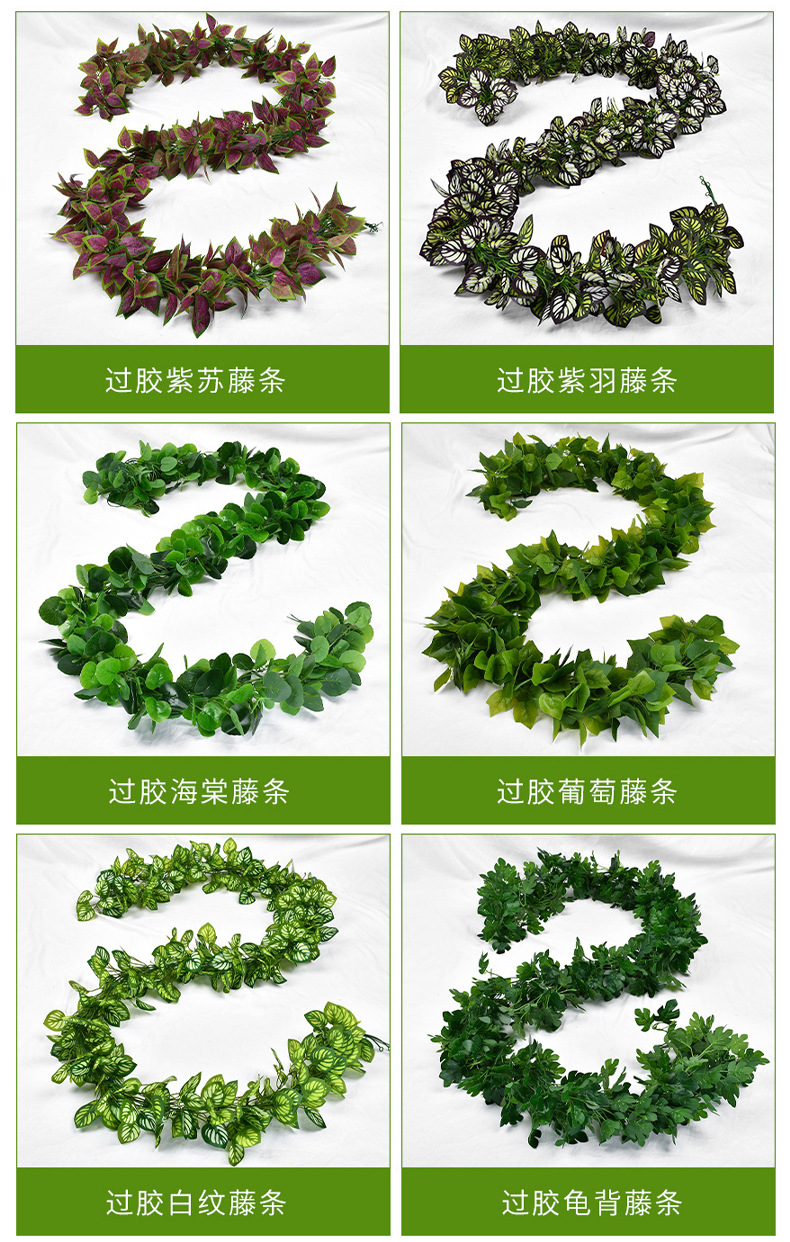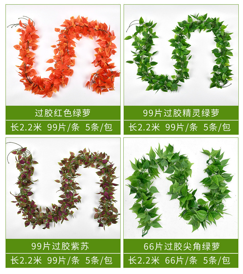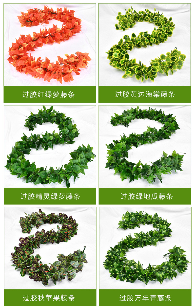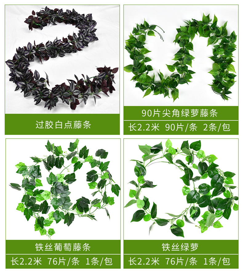 Моделирование виноградной лозы Зеленые виноградные листья Кленовые лозы Пластиковые трубы потолочные украшения Моделирование растений Зеленые листья
