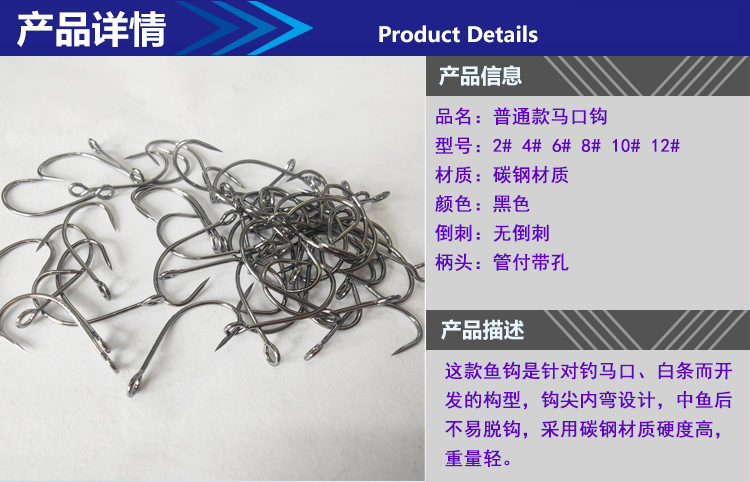 此款大眼马口钩,采用的是82的钢材,比传统的72钢材要更好一些,欢迎绑毛挂亮片的客户或是自用客户来选购!长期合作,供货稳定!