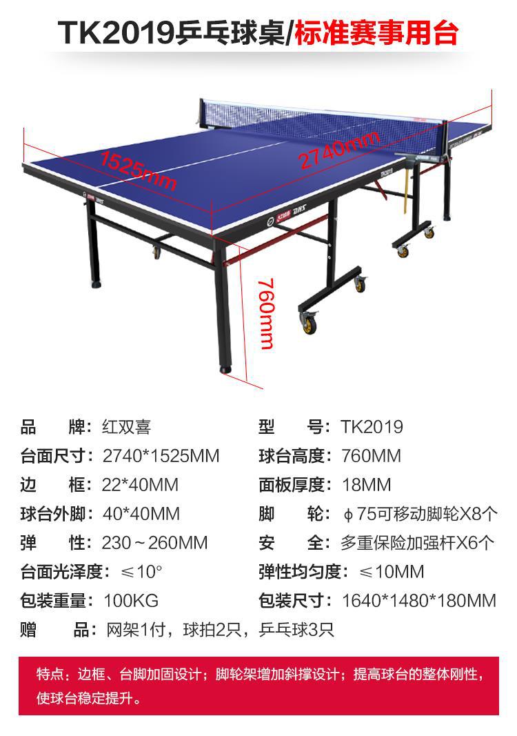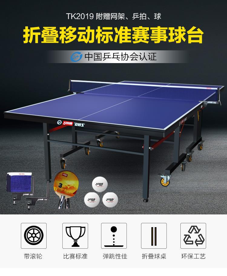 Складной теннисный стол DHS Red Double Happiness с колесами, стандартный соревновательный стол для настольного тенниса TK2019 в кейсе