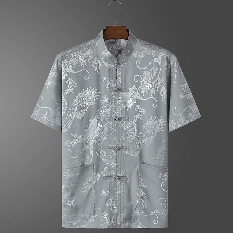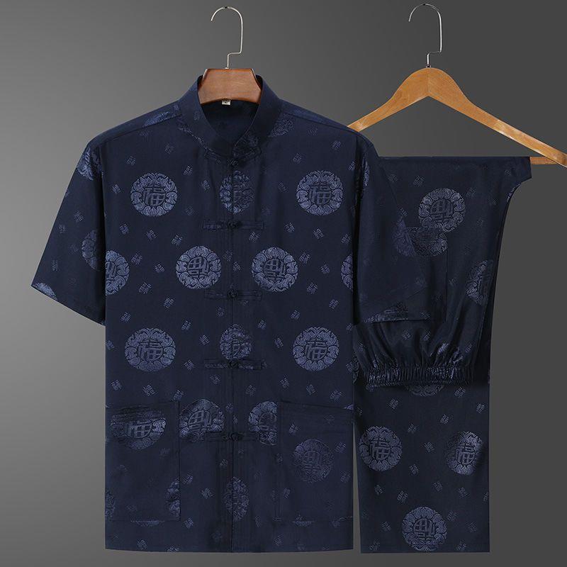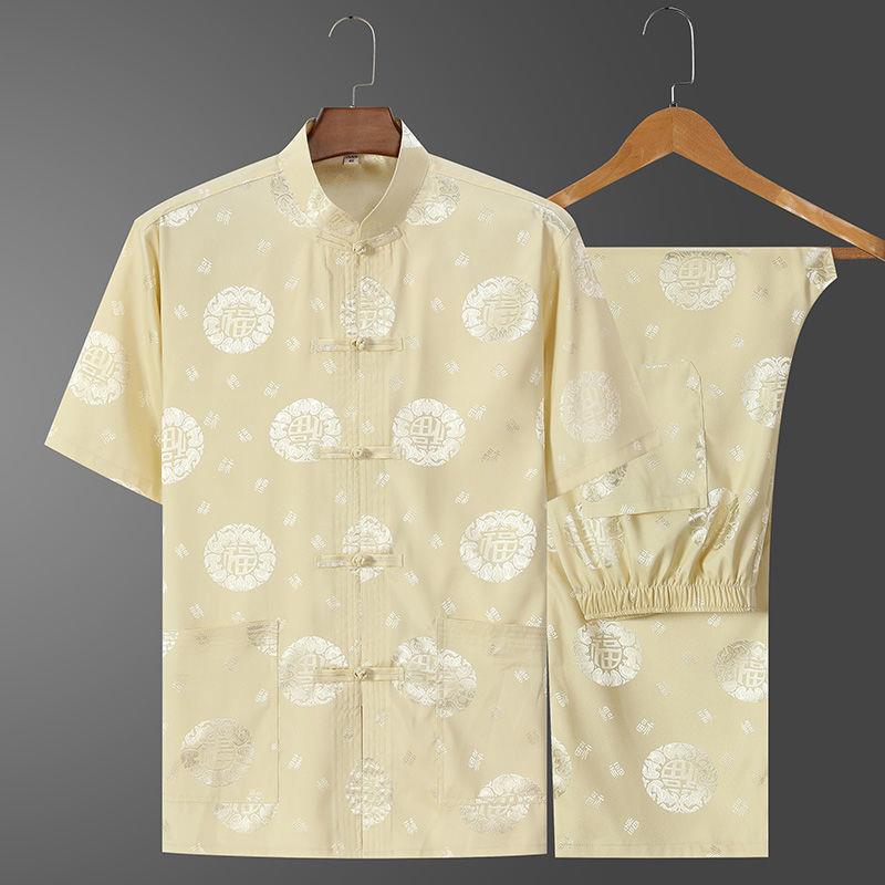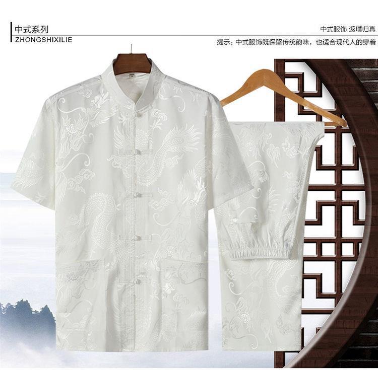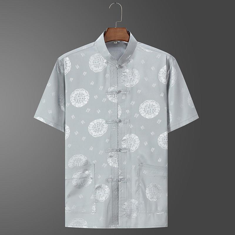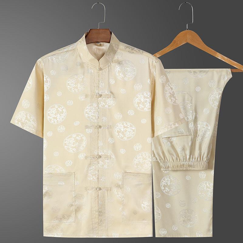Ice Tang костюм мужской среднего и пожилого возраста рубашка с короткими рукавами повседневный дедушка летняя одежда в китайском стиле