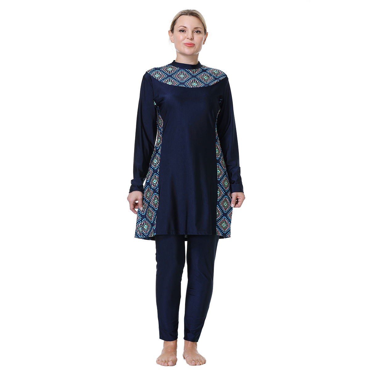 一流布料和一流做工。高弹性,舒适。3件套包含游泳帽、上衣、裤子。防曝光绳扣。 First class cloth and first class workmanship. Highly elastic, comfortable. Anti exposure. A Three-piece suit consists of cap, coat and pant. |