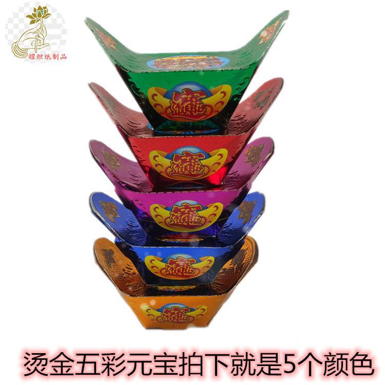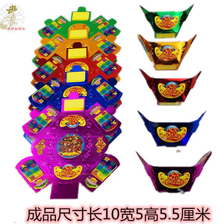 Жертва Красочные золотые слитки Yuanbao Полуфабрикаты Золотые слитки Yuanbao Желтая бумага Бамбуковая целлюлоза Жертва Гробница-подметание День
