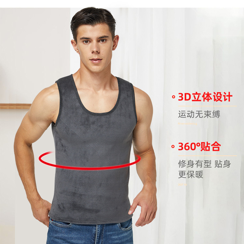 Мужской Золотой бархатный терможилет на флисовой подкладке, утолщенное нижнее белье с круглым вырезом, осенне-зимний внутренний жилет без рукавов