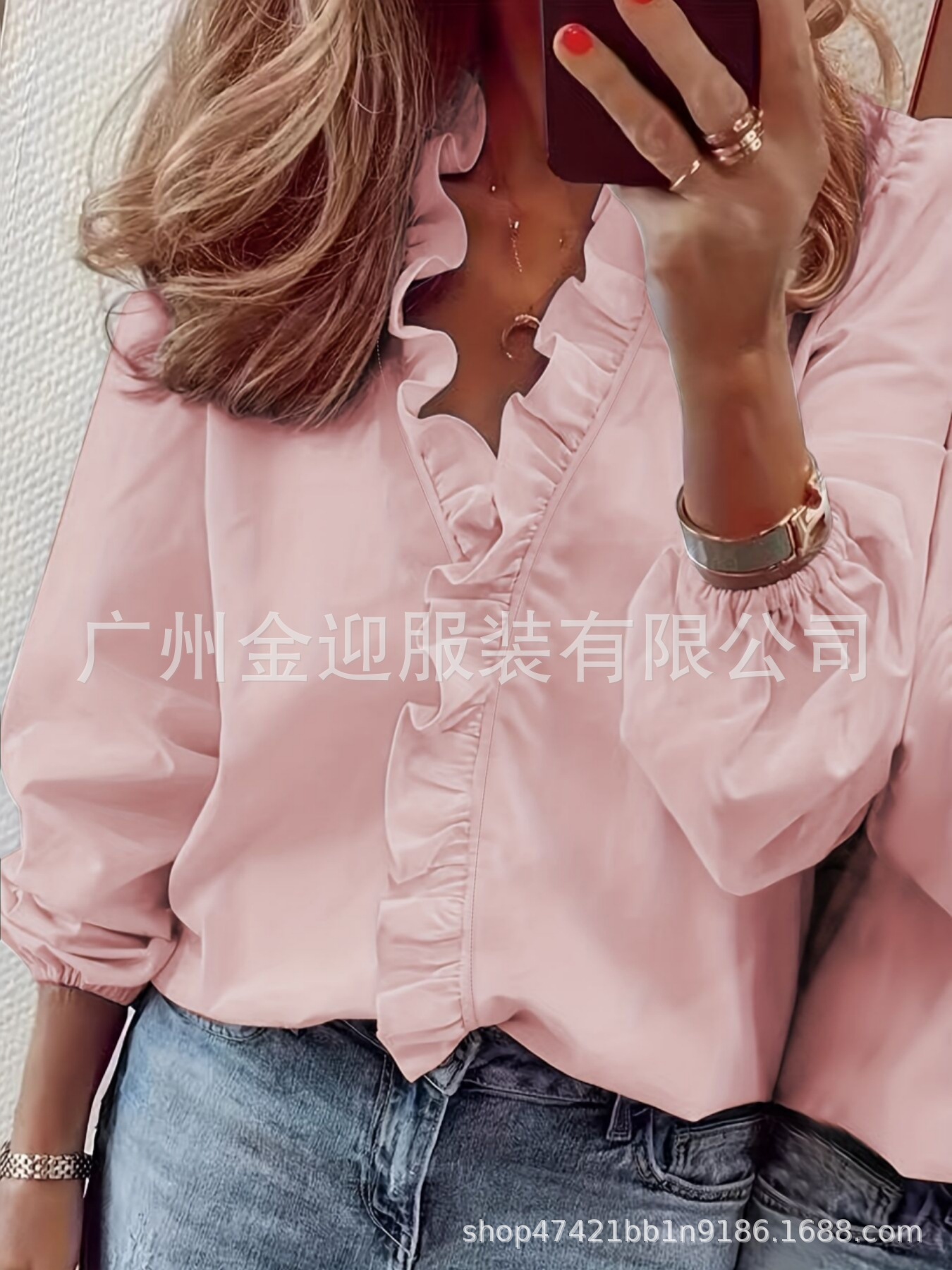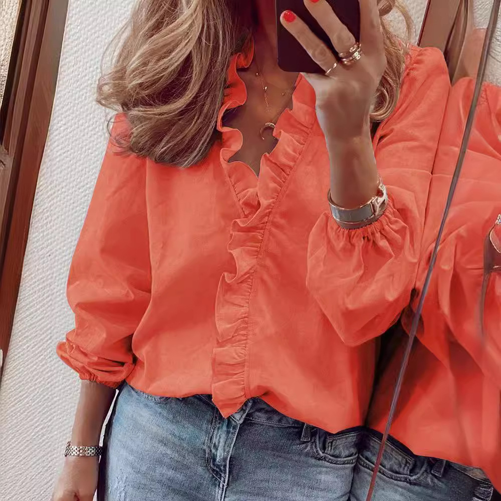 2023 Amazon желает независимой станции Ebay весны и лета Европы и США новой рубашки с длинными рукавами и рюшами Женская рубашка