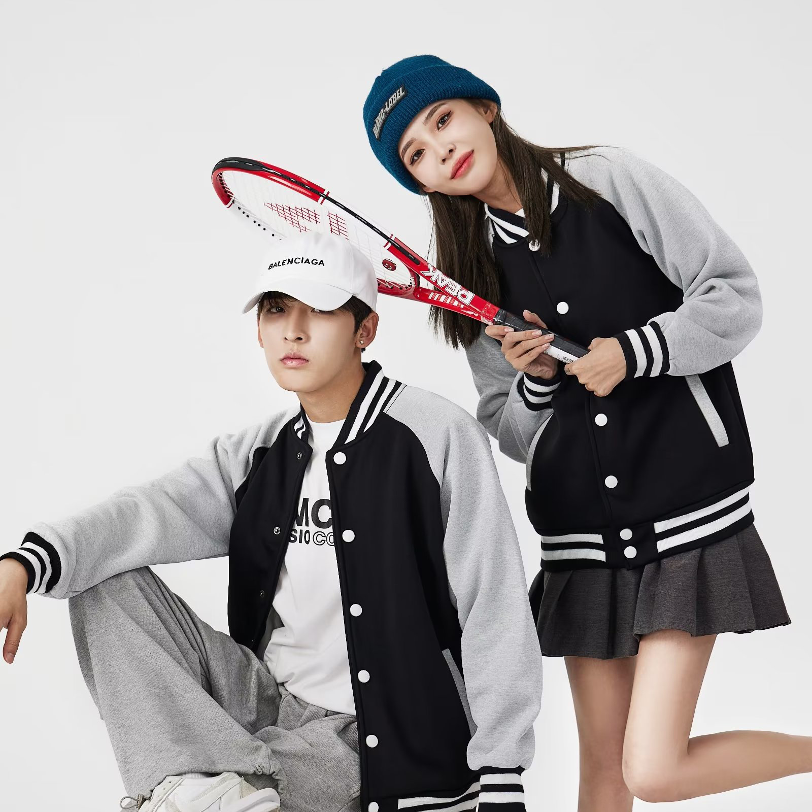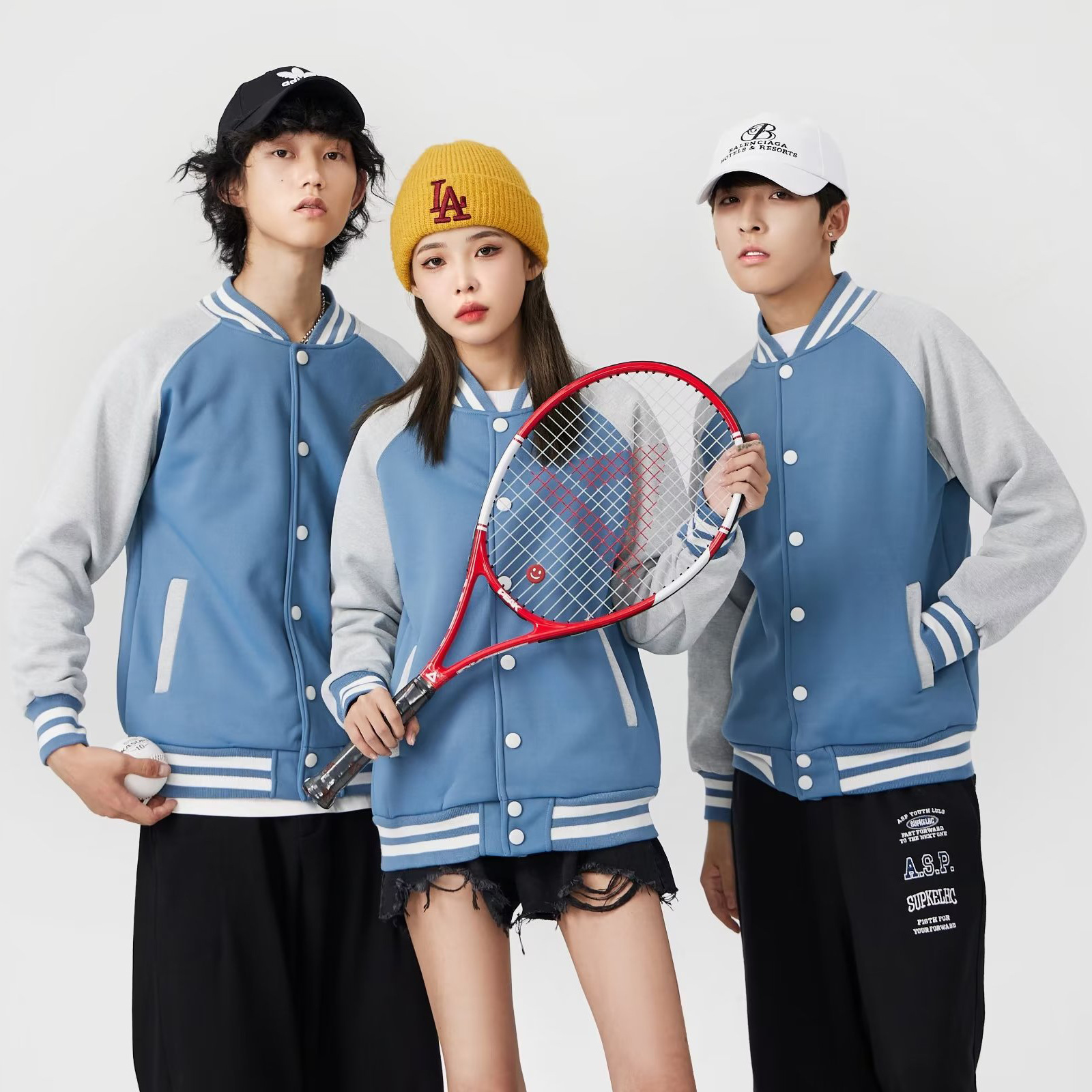Флисовая бейсбольная куртка на молнии, с цветовыми блоками, унисекс, рабочая одежда для учебных заведений, спортивная куртка, воротник-стойка, модный цветовой дизайн.