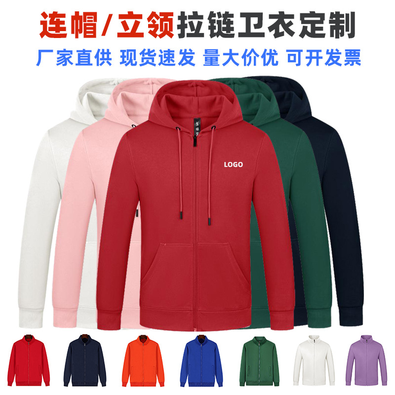 Индивидуальный свитшот на молнии с воротником-стойкой и капюшоном, флисовая куртка-кардиган, вышитая рабочая одежда с длинными рукавами, рекламная футболка с нанесением логотипа.