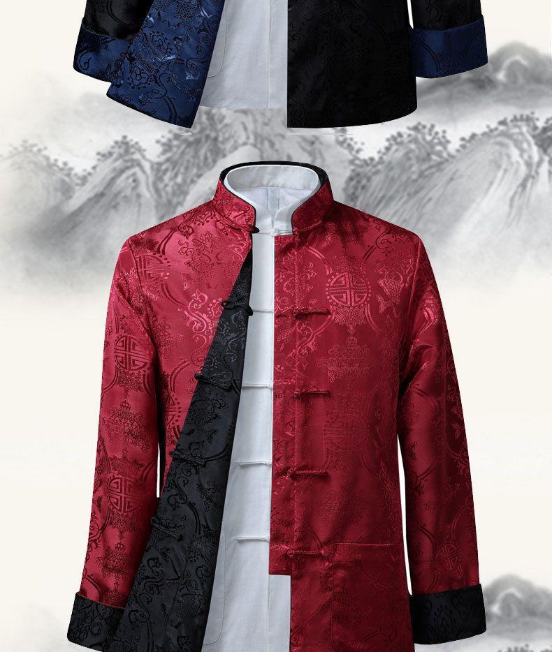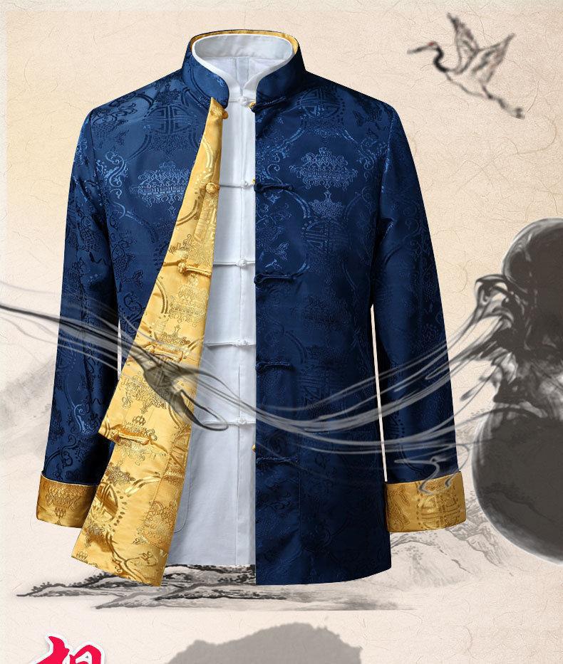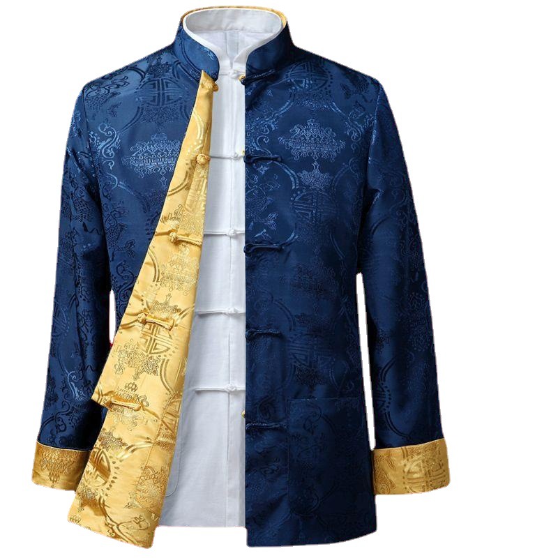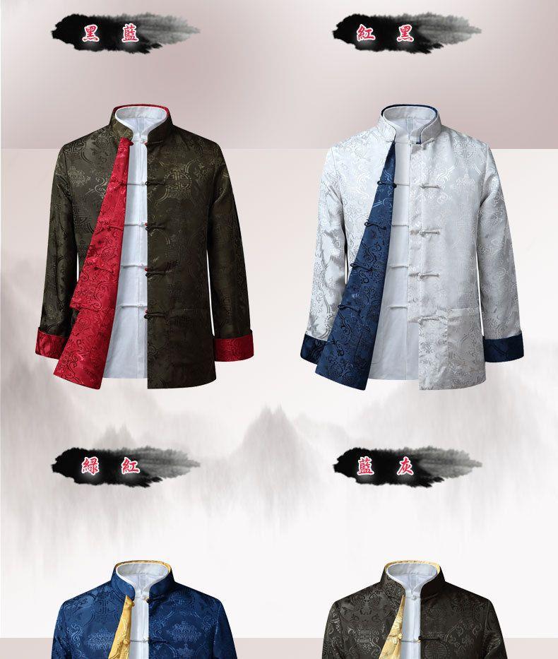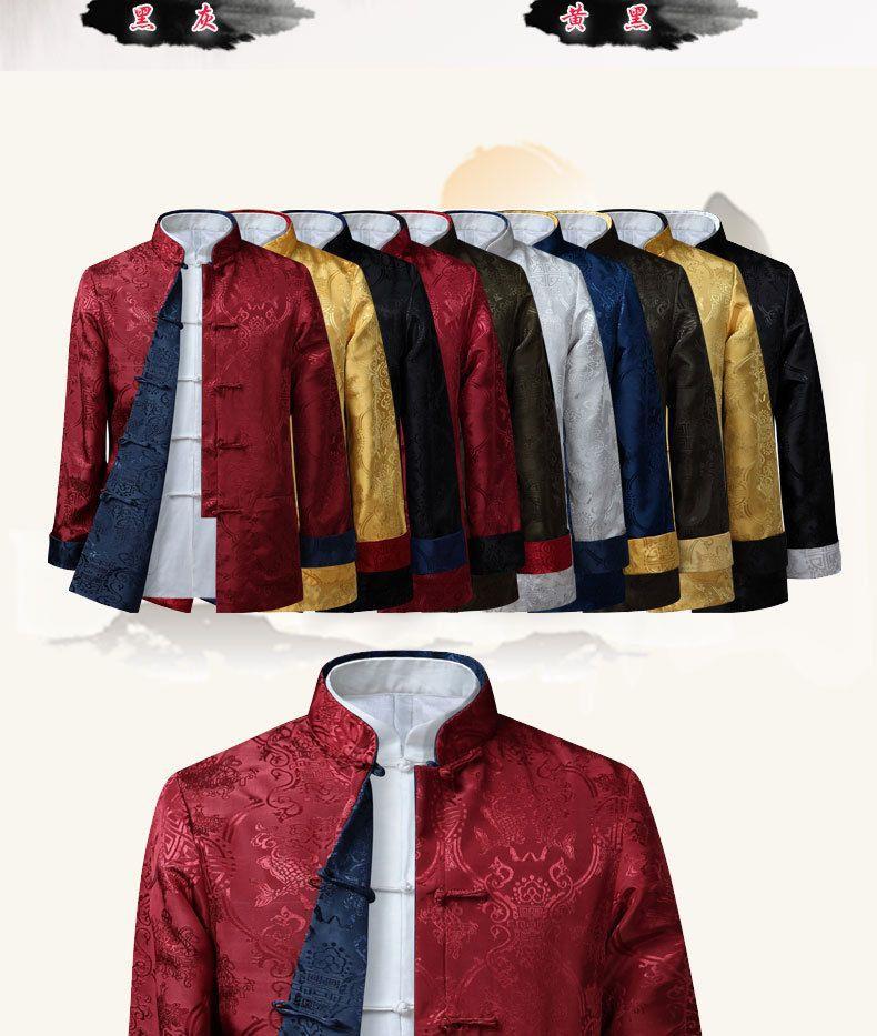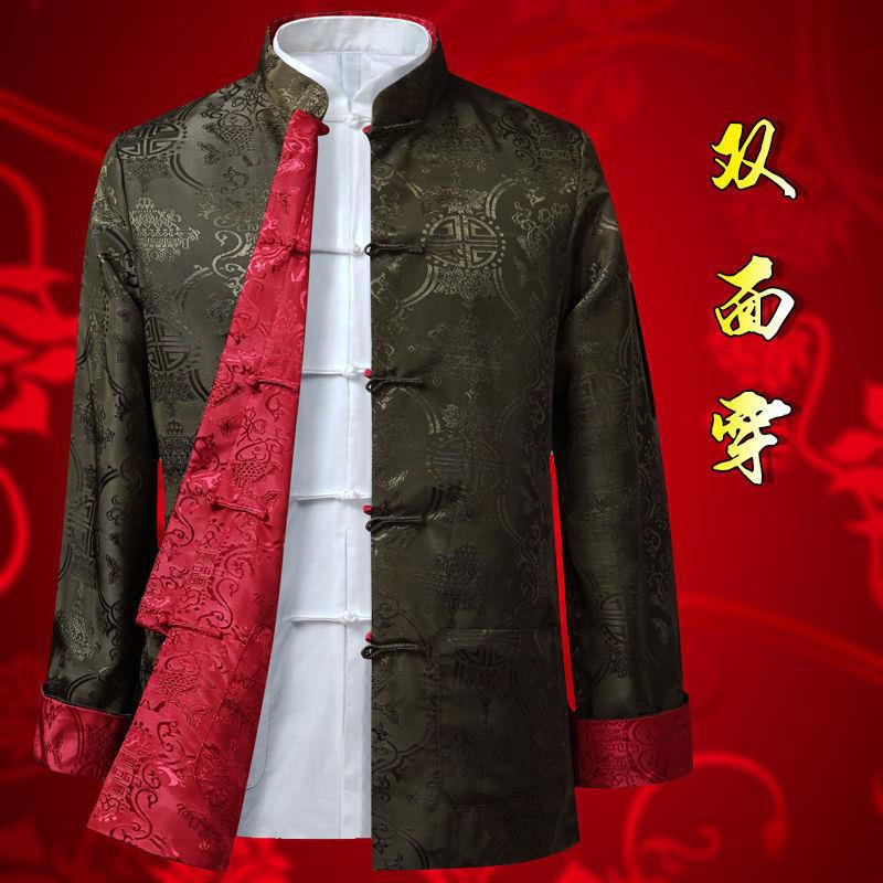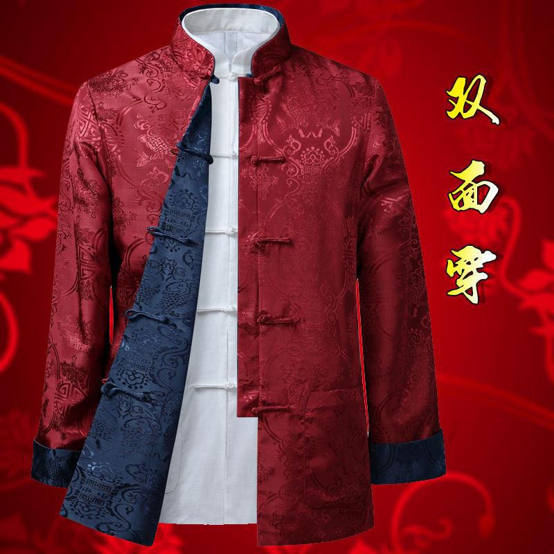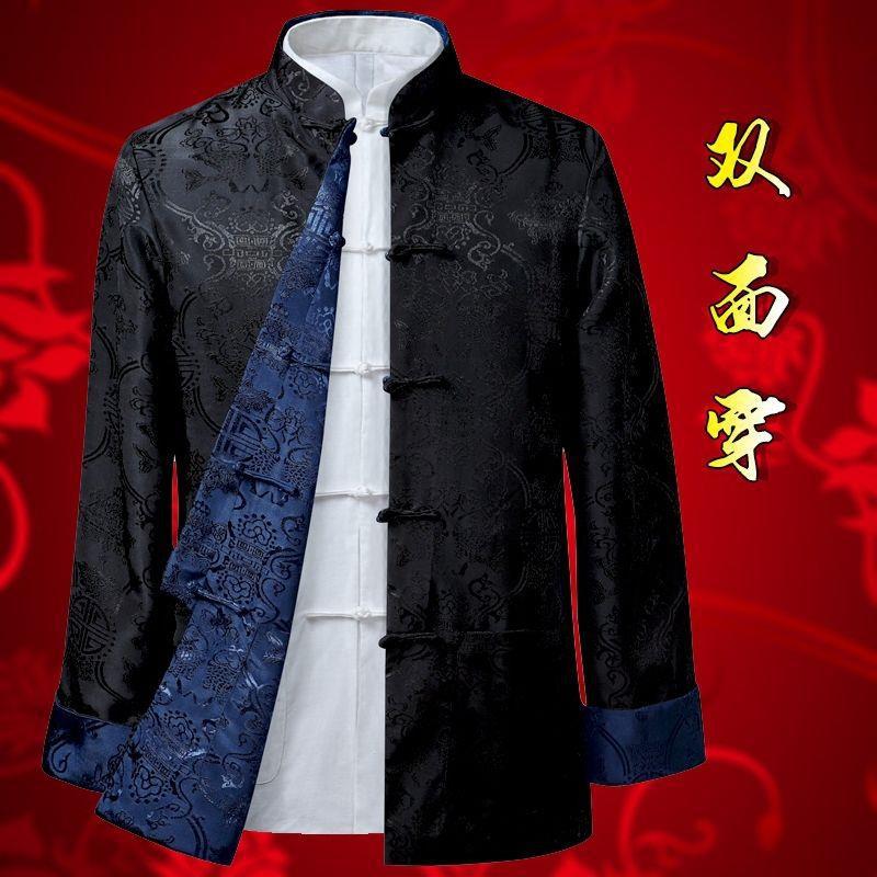 Весенний и осенний тонкий мужской средний и пожилой костюм Тан в двухсторонней куртке с длинными рукавами