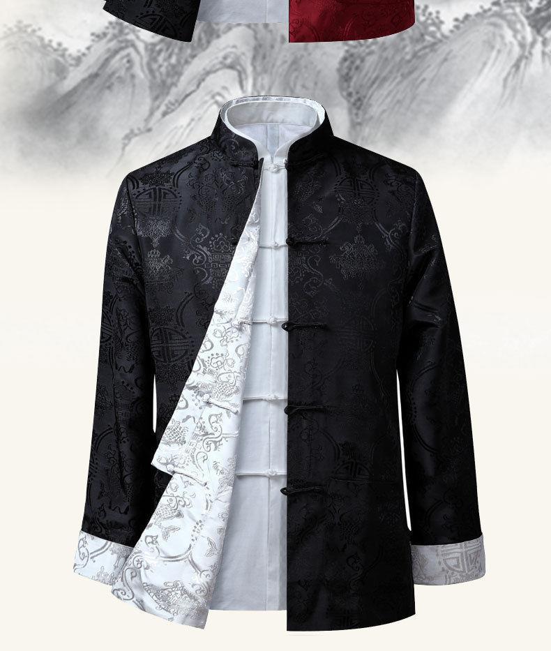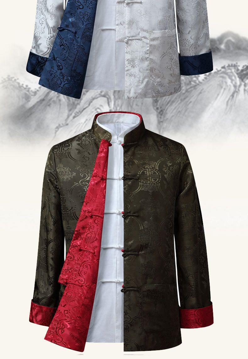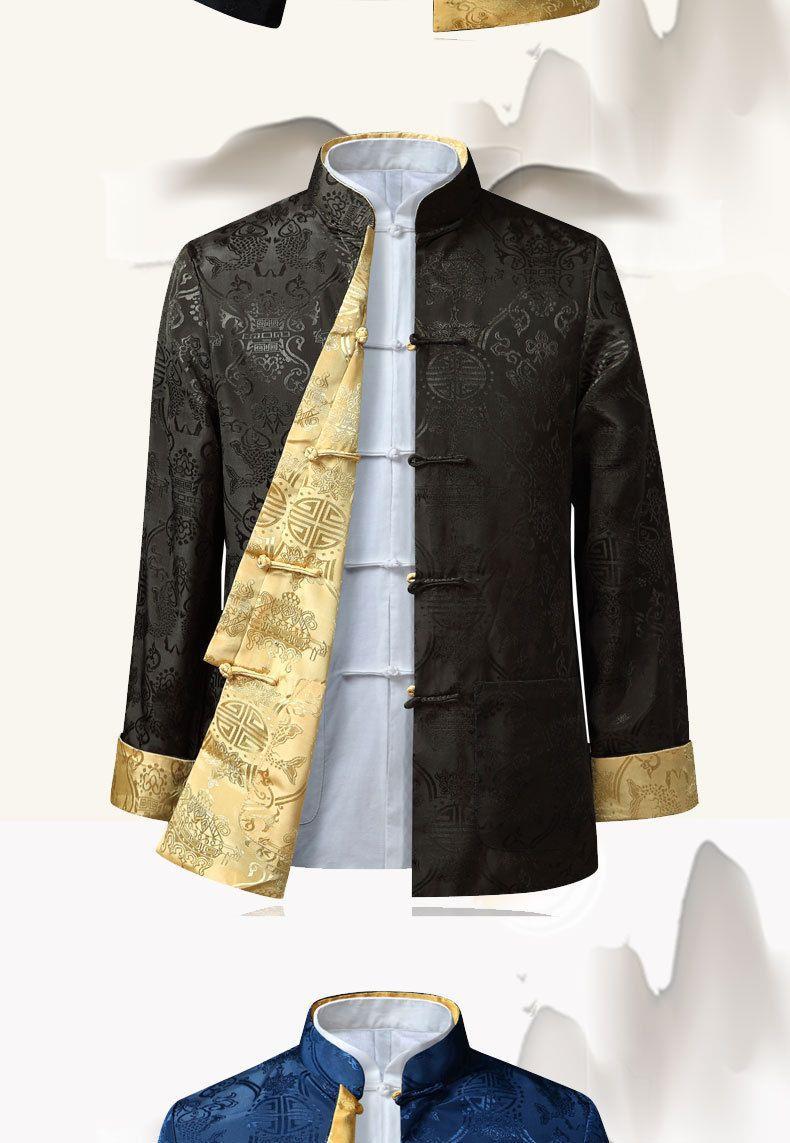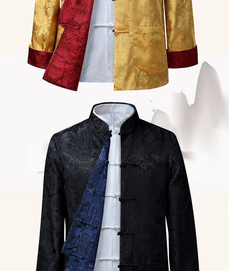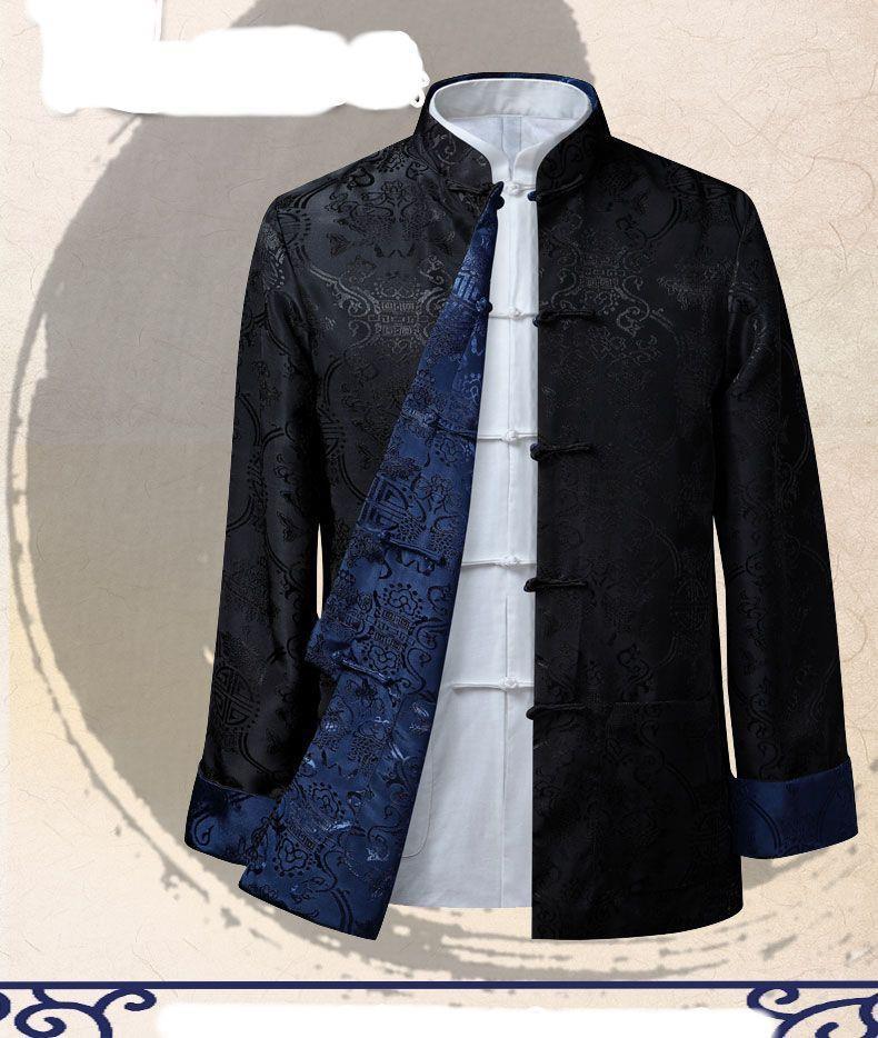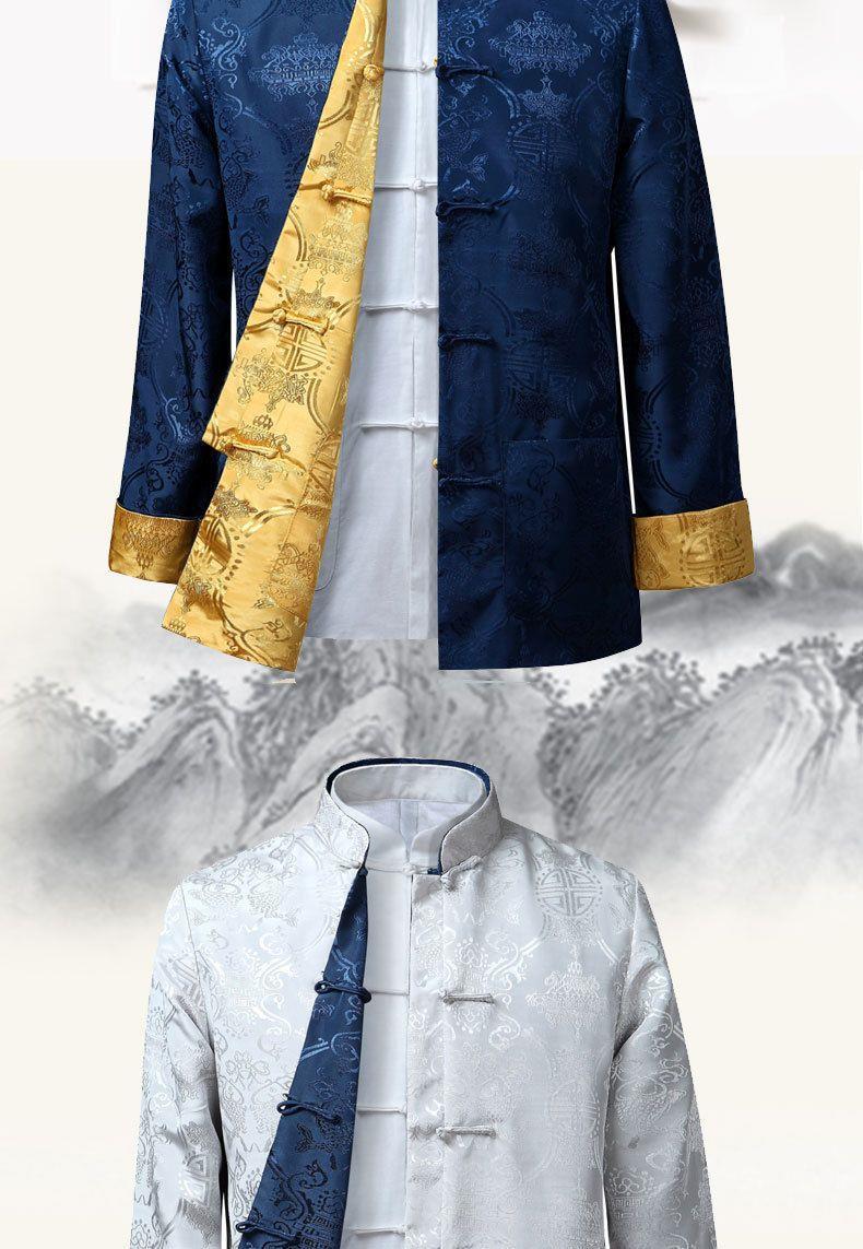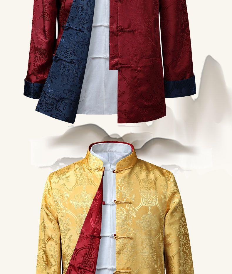 Весенний и осенний тонкий мужской средний и пожилой костюм Тан в двухсторонней куртке с длинными рукавами