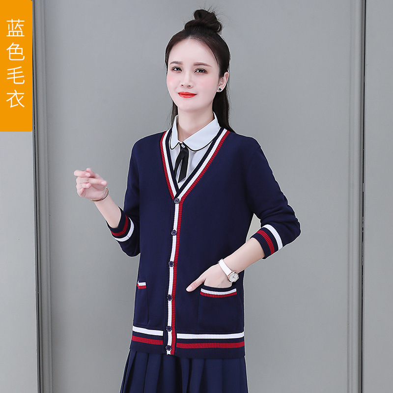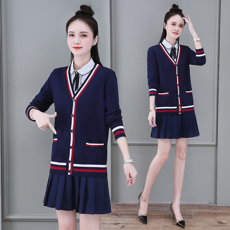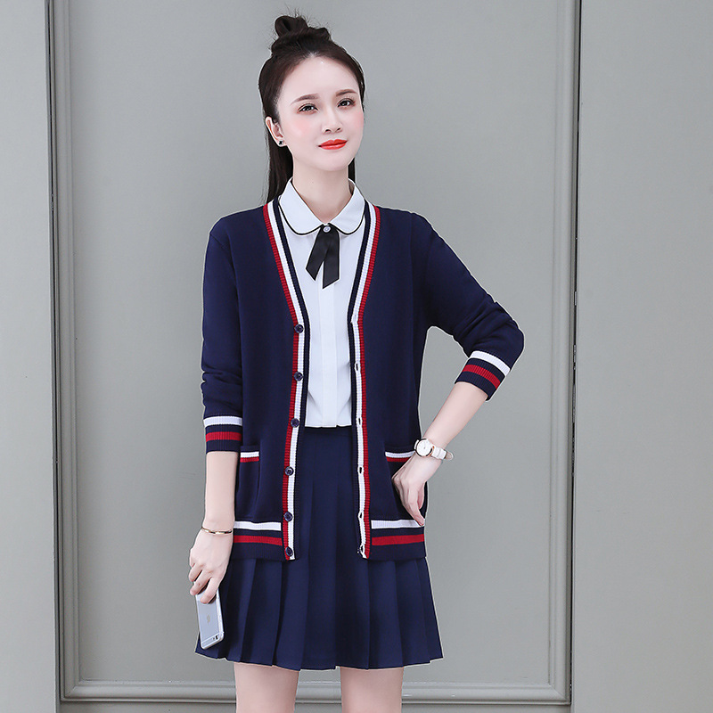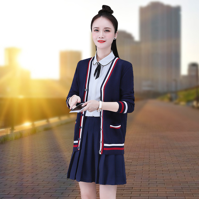 Трикотаж для учителя детского сада садовая одежда костюм-тройка Деловая одежда рубашка плиссированная юбка кардиган свитер модная Рабочая одежда