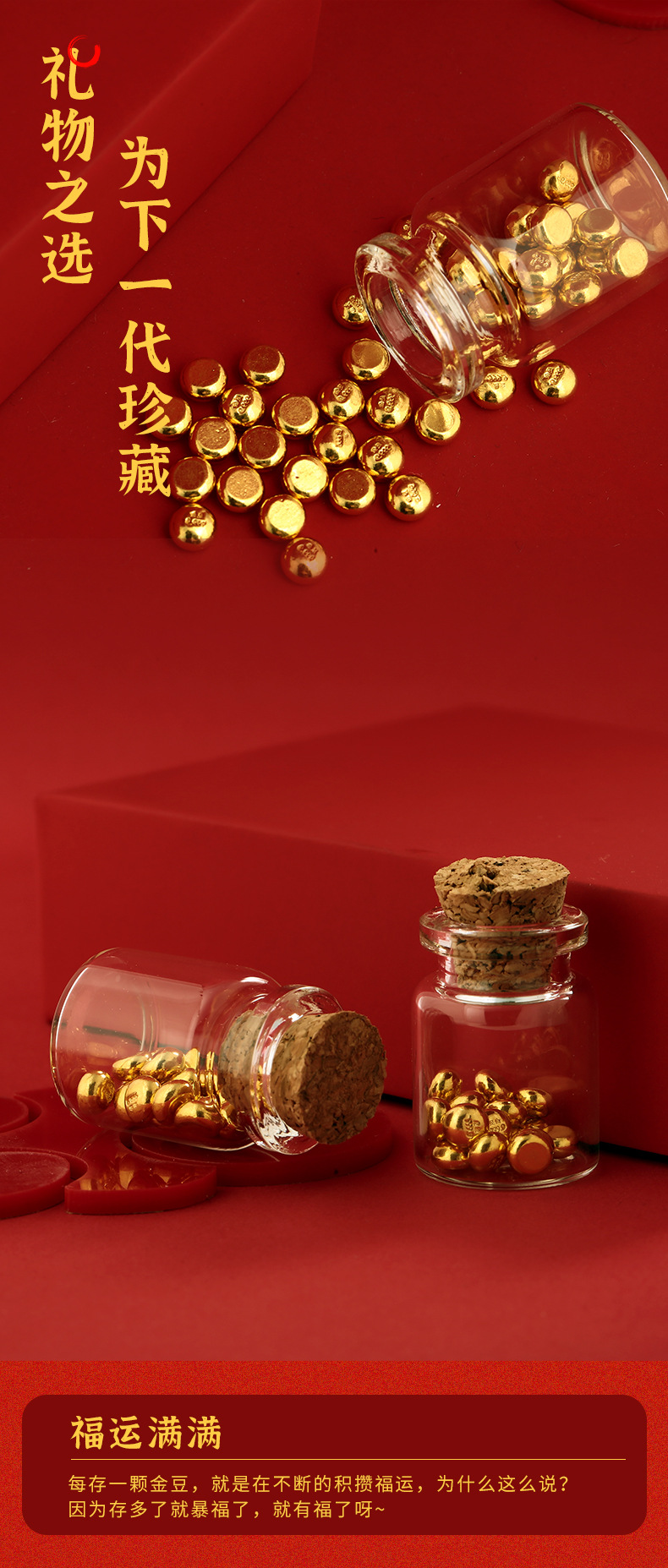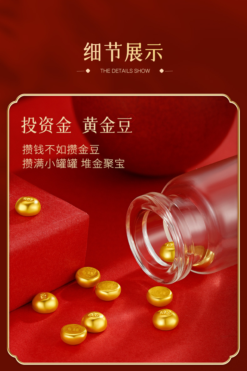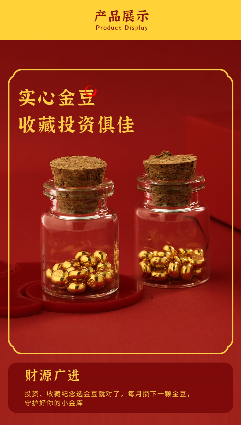 Qianxin ювелирные изделия 999 золотых маленьких золотых бобов 24k золото твердая инвестиционная коллекция Золотая Копилка от прыщей в наличии оптом