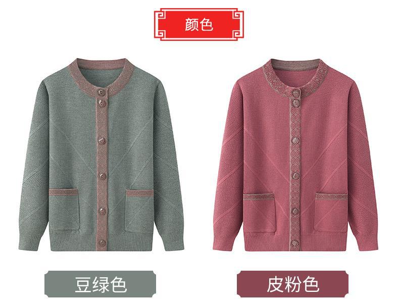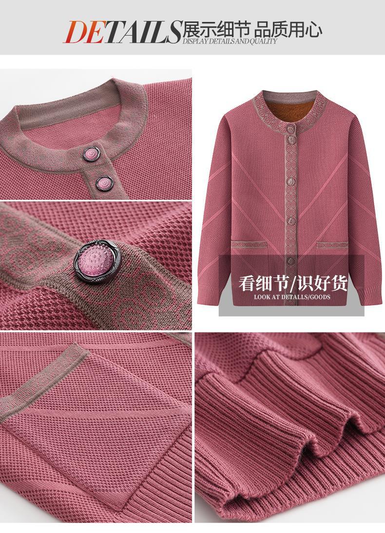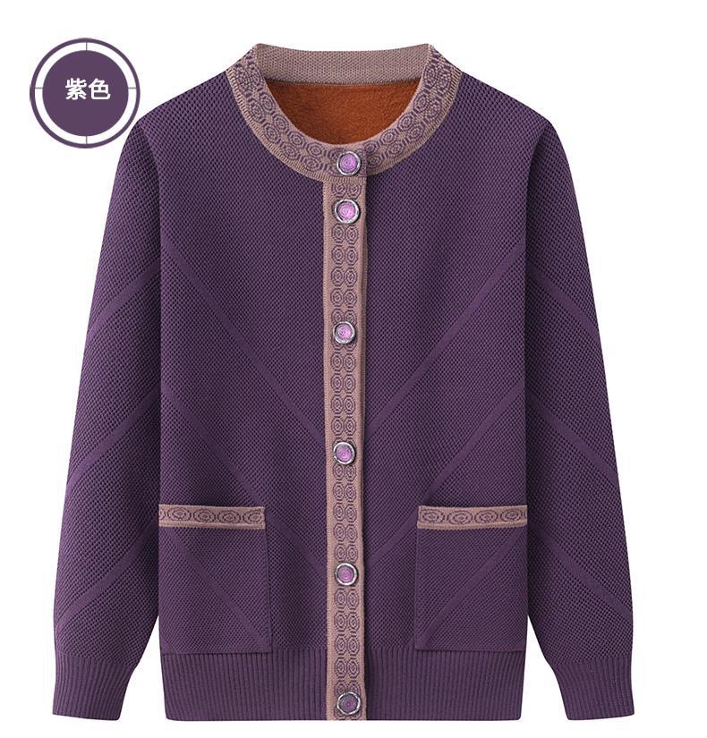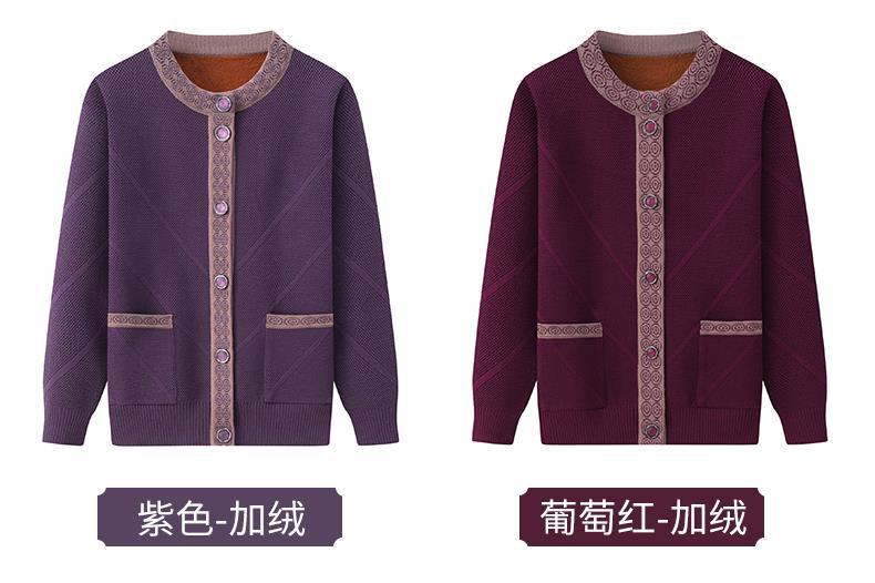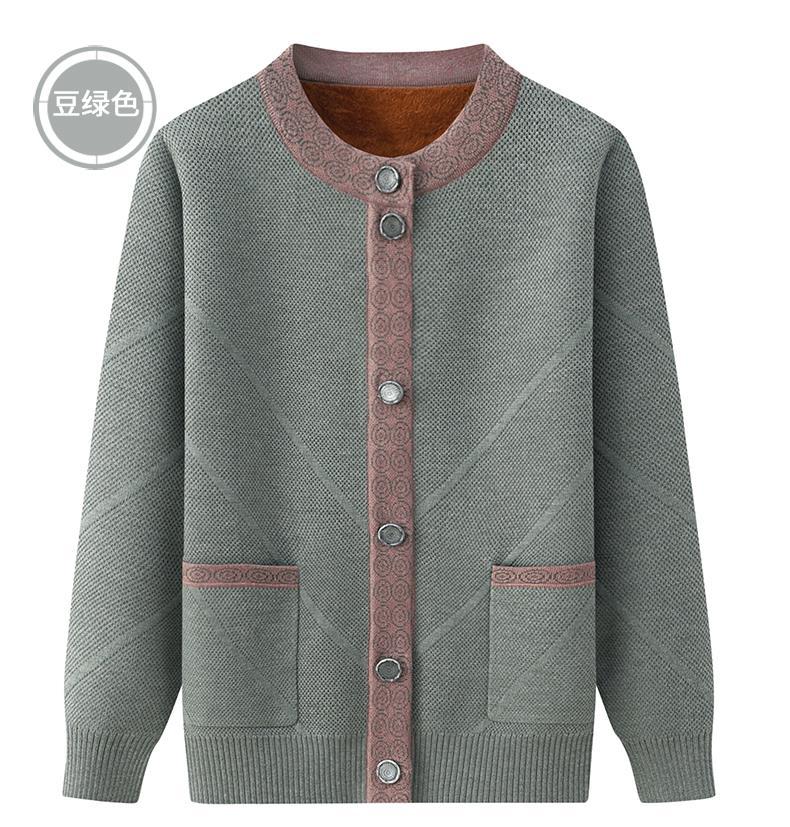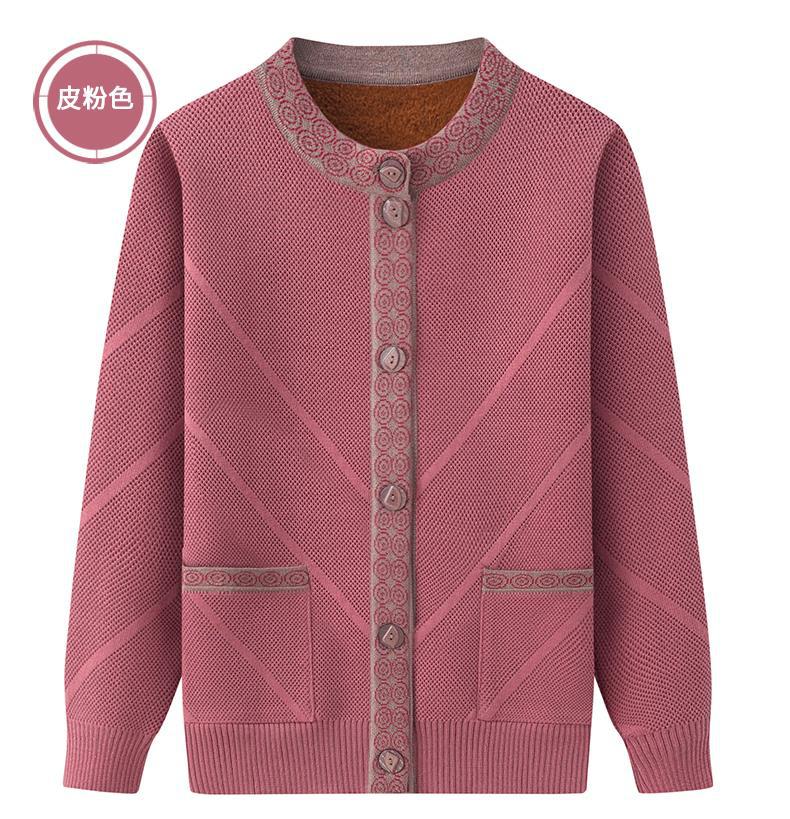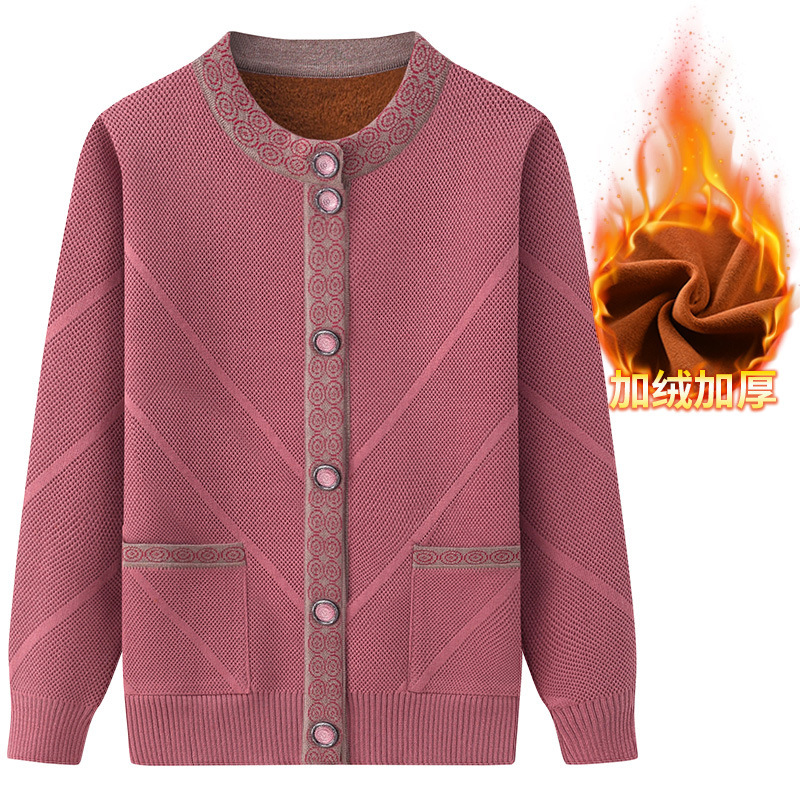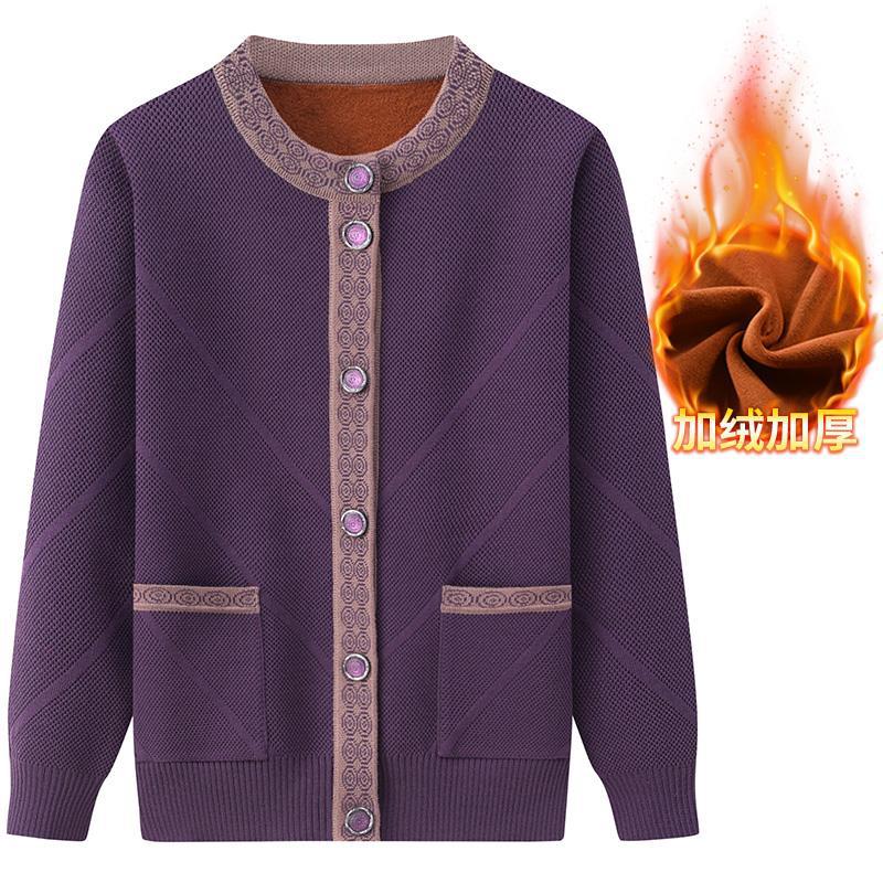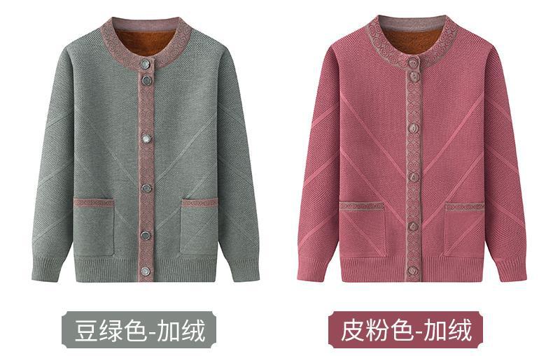 Весенне-осеннее пальто для матери Зимний свитер для бабушки с флисовой подкладкой Женский утепленный кардиган для тещи среднего и пожилого возраста