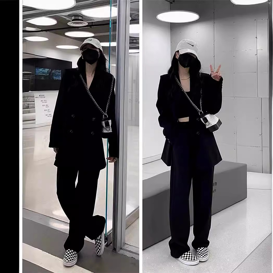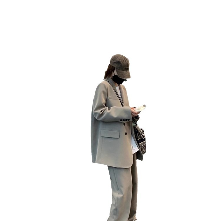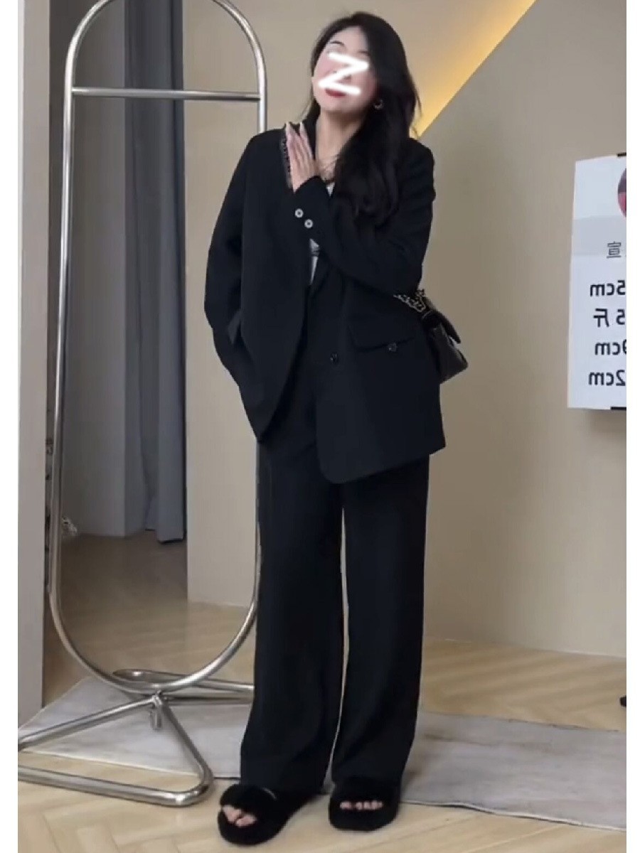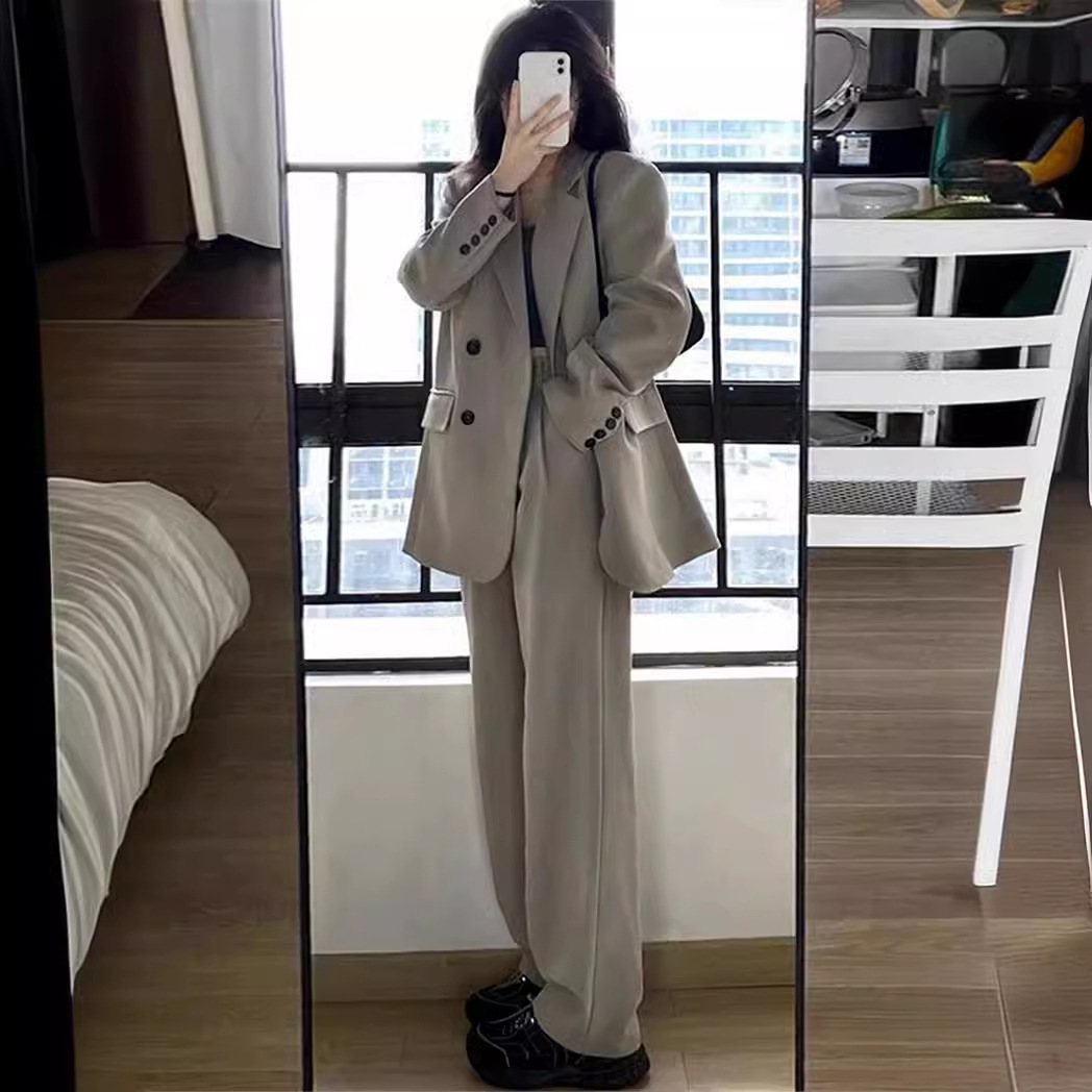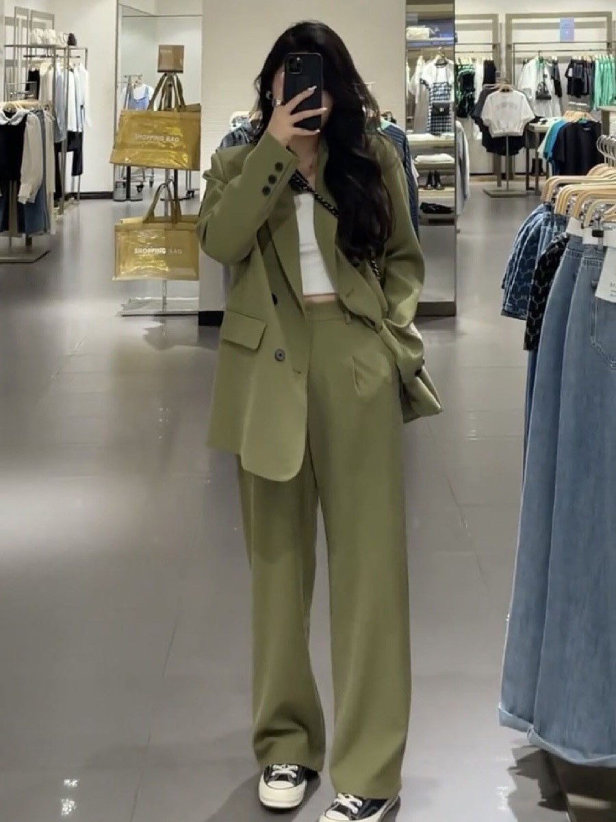 Весенне-осенний женский костюм больших размеров, костюм для толстой сестры, тонкие повседневные широкие брюки в иностранном стиле, из двух частей, 227