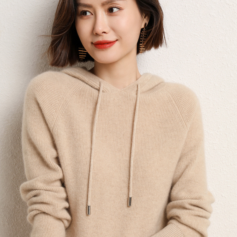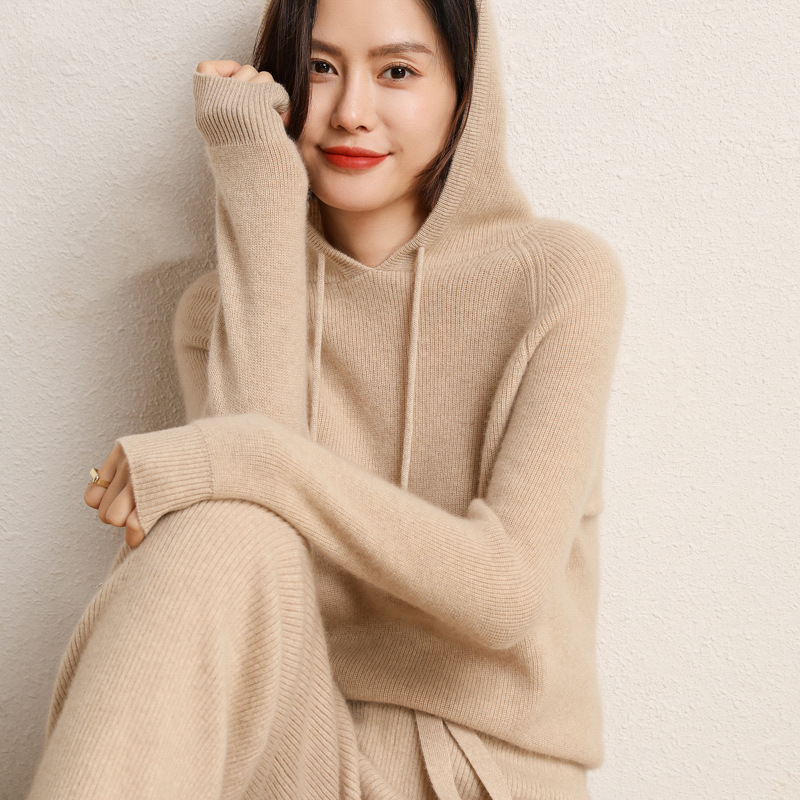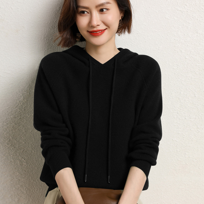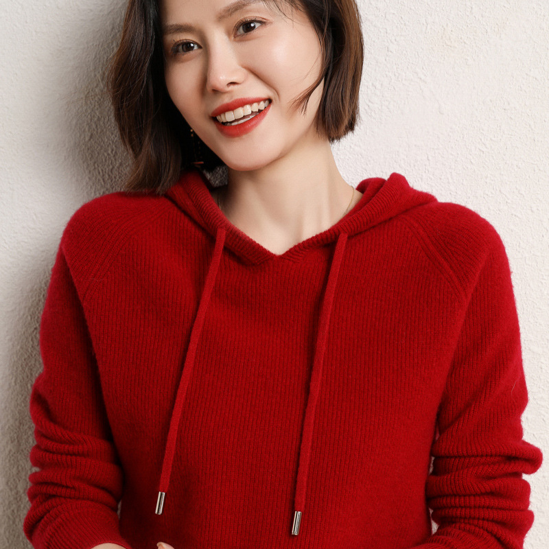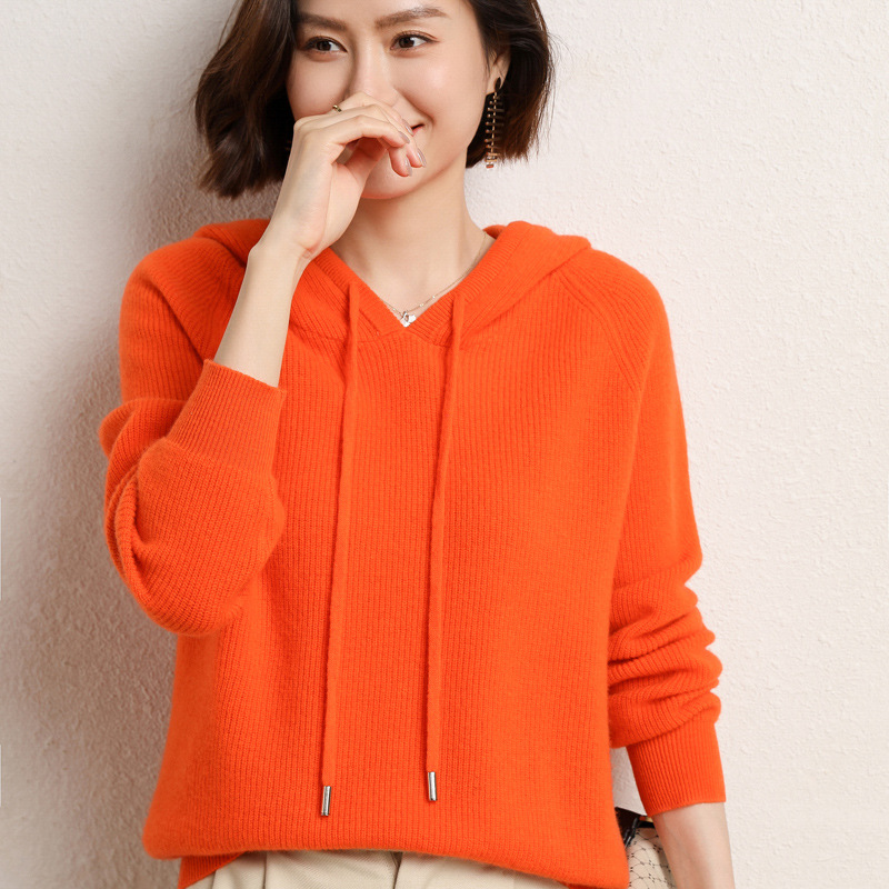 Шерстяной свитер с капюшоном Женская шерсть 100 осень и зима Новый кашемировый свитер с капюшоном Вязаная Толстая Базовая толстовка с капюшоном