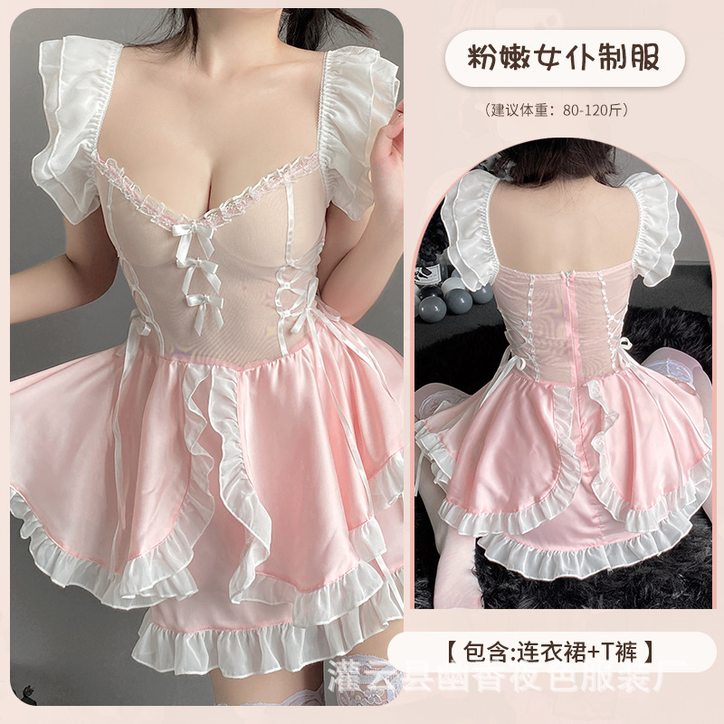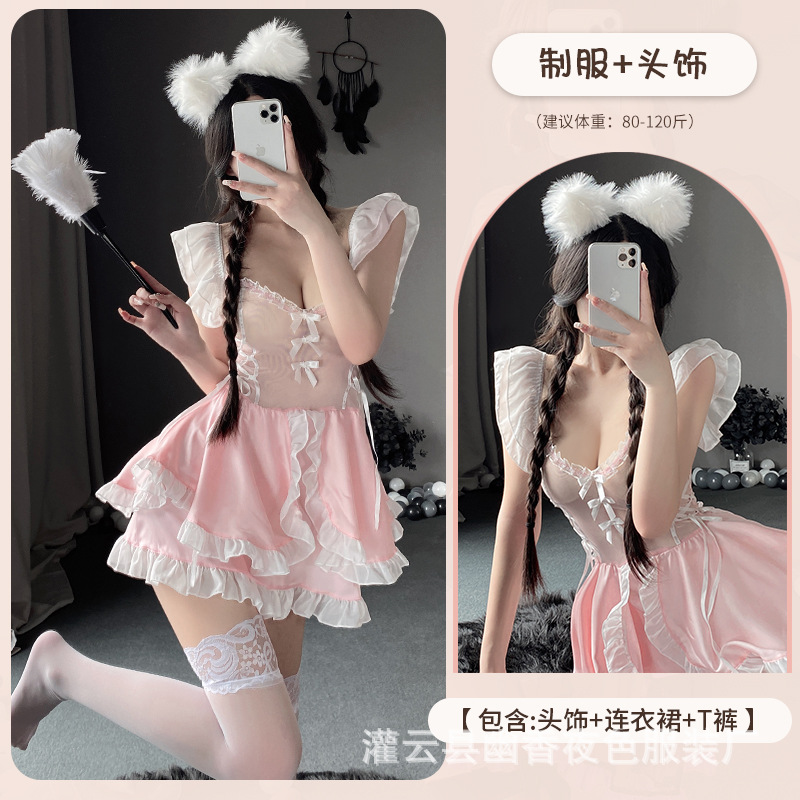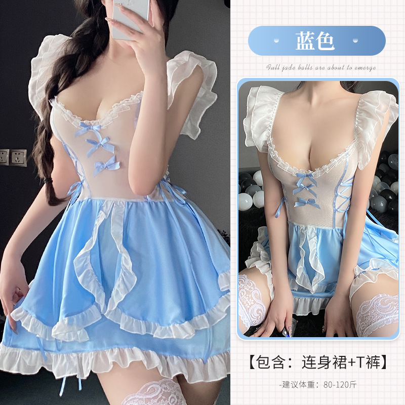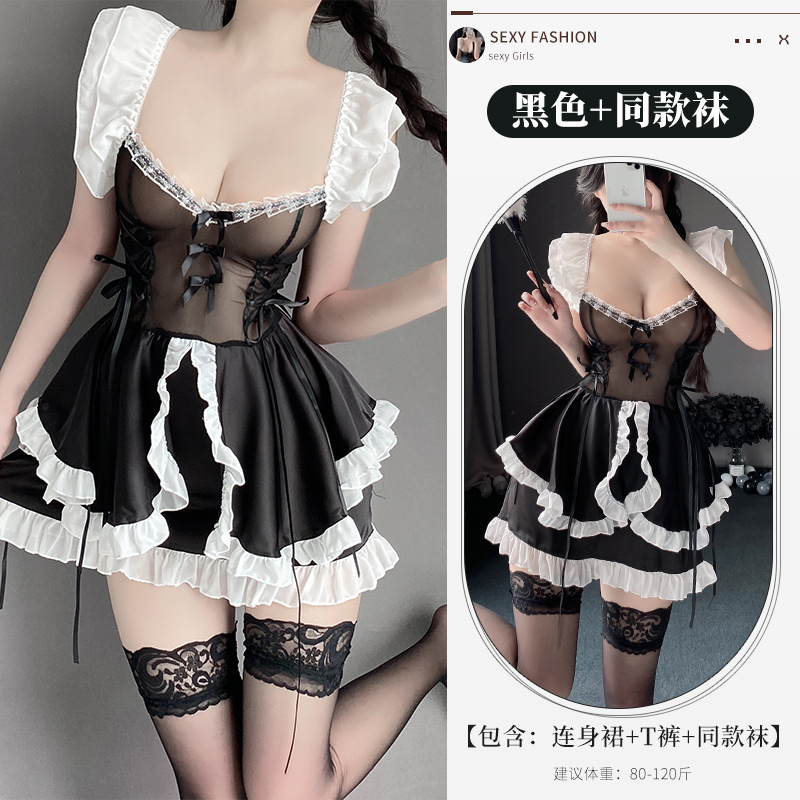 Прозрачное эротическое нижнее белье женская сексуальная милая горничная маленькая грудь с горячей флирт кровать униформа соблазн 2591