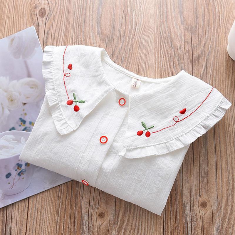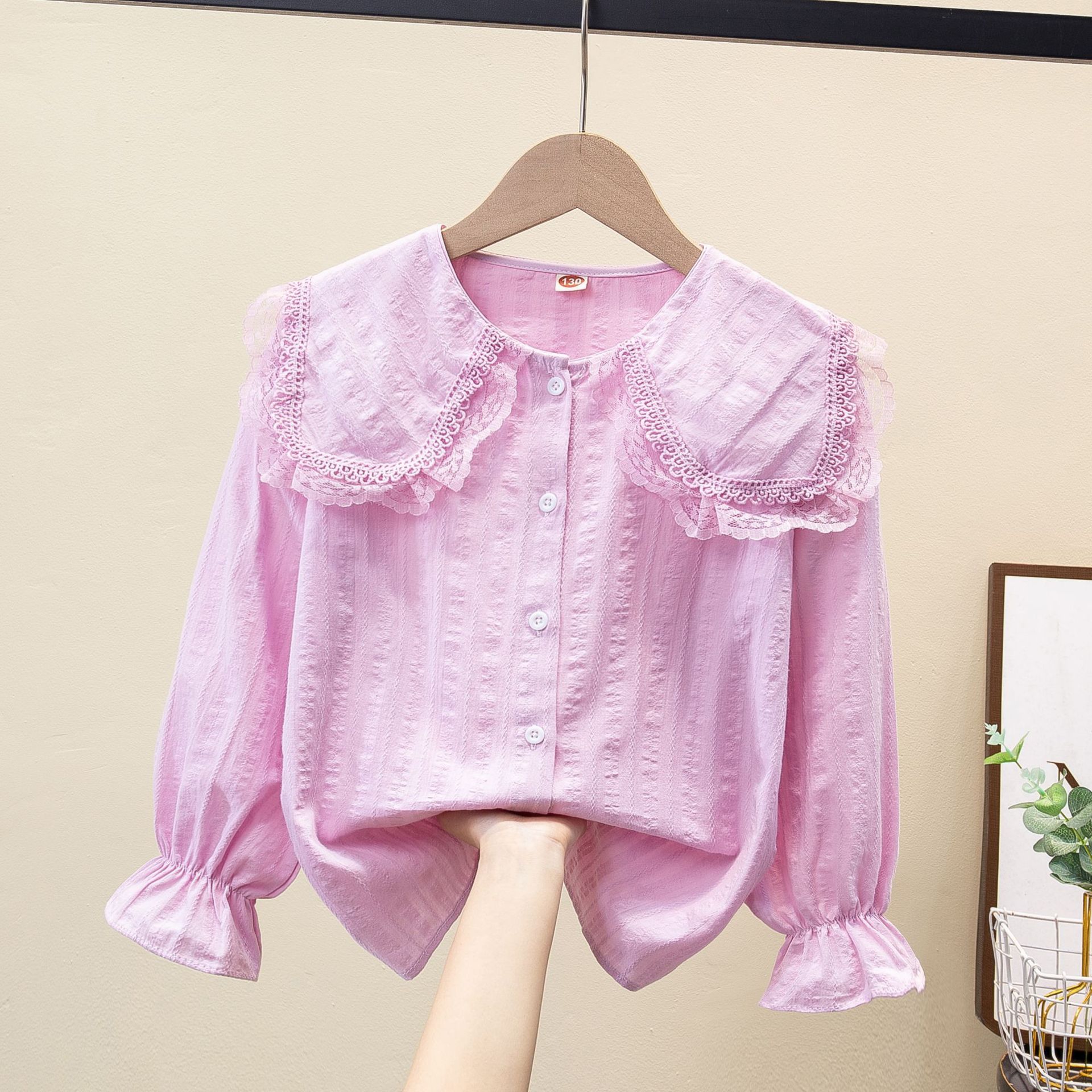 Белая базовая рубашка из чистого хлопка с кружевом для маленьких девочек, школьниц, с длинными рукавами для детей старшего возраста, в иностранном стиле для детей.