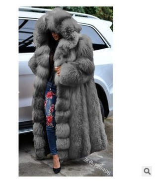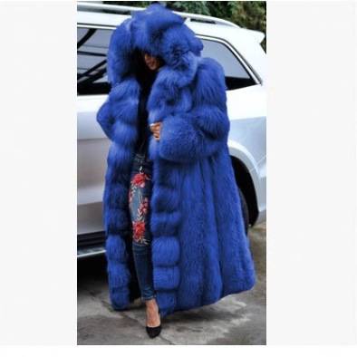 2023 Зимнее супер длинное однотонное пальто из искусственного меха свободное Модное теплое толстое пальто больших размеров с капюшоном