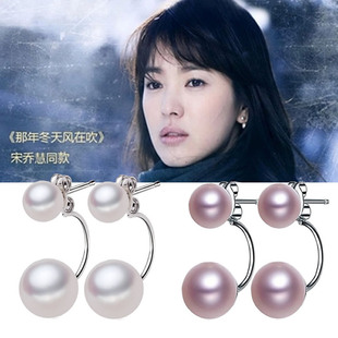 S925 серебряные серьги с натуральным пресноводным жемчугом Корейский темперамент пресноводный жемчуг ушной крючок антиаллергенные серьги для женщин