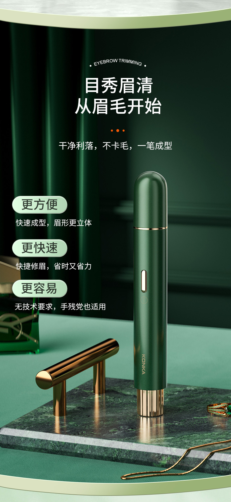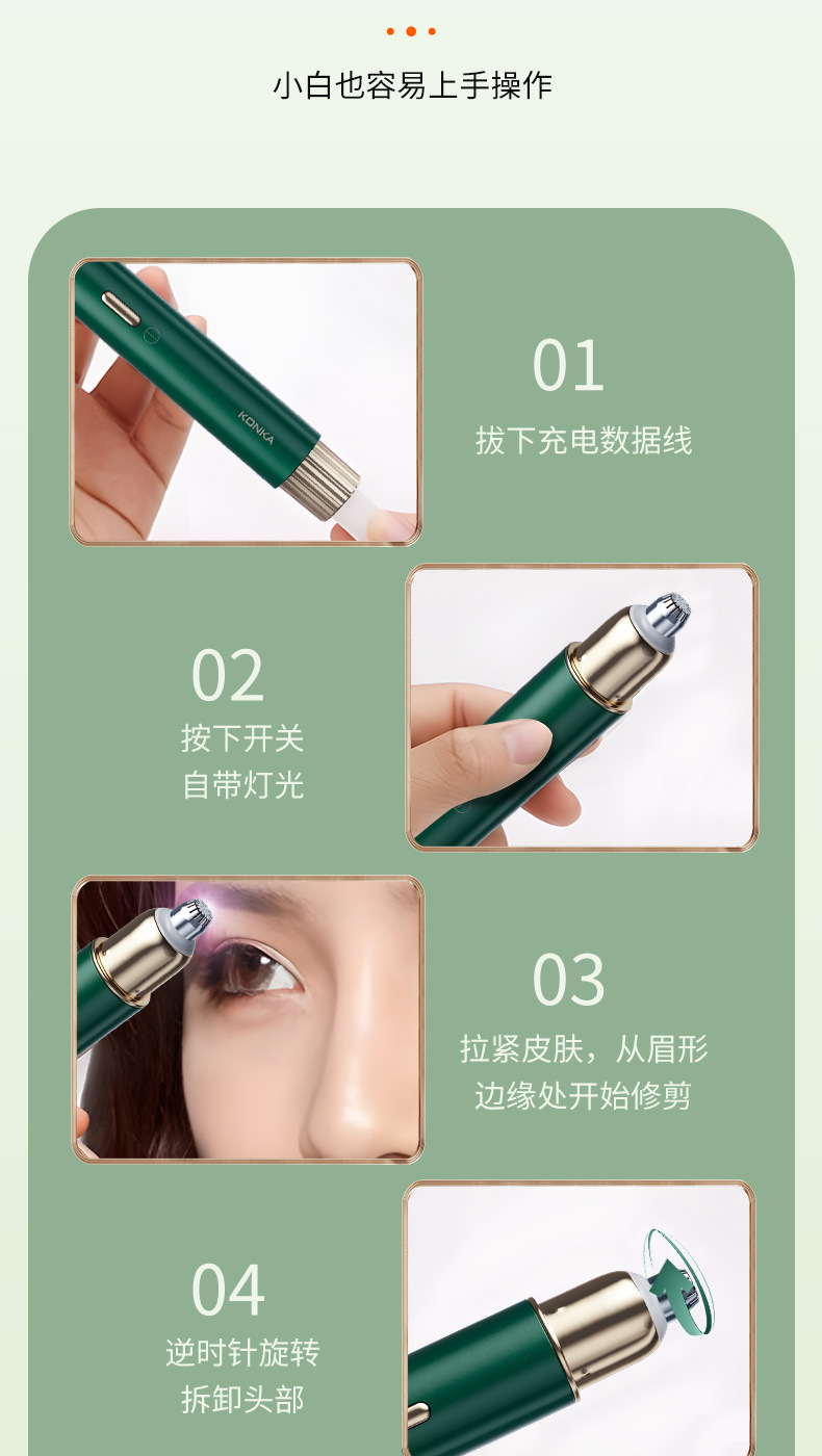 Электрический триммер для бровей Konka, домашний триммер для бровей, портативный триммер для бровей, косметический инструмент, электрическая бритва для бровей
