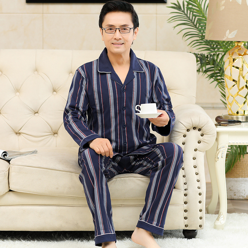 Пижама Chunbaifen с длинными рукавами и длинными брюками для мужчин среднего и старшего возраста, кардиган, домашняя одежда больших размеров для отдыха.