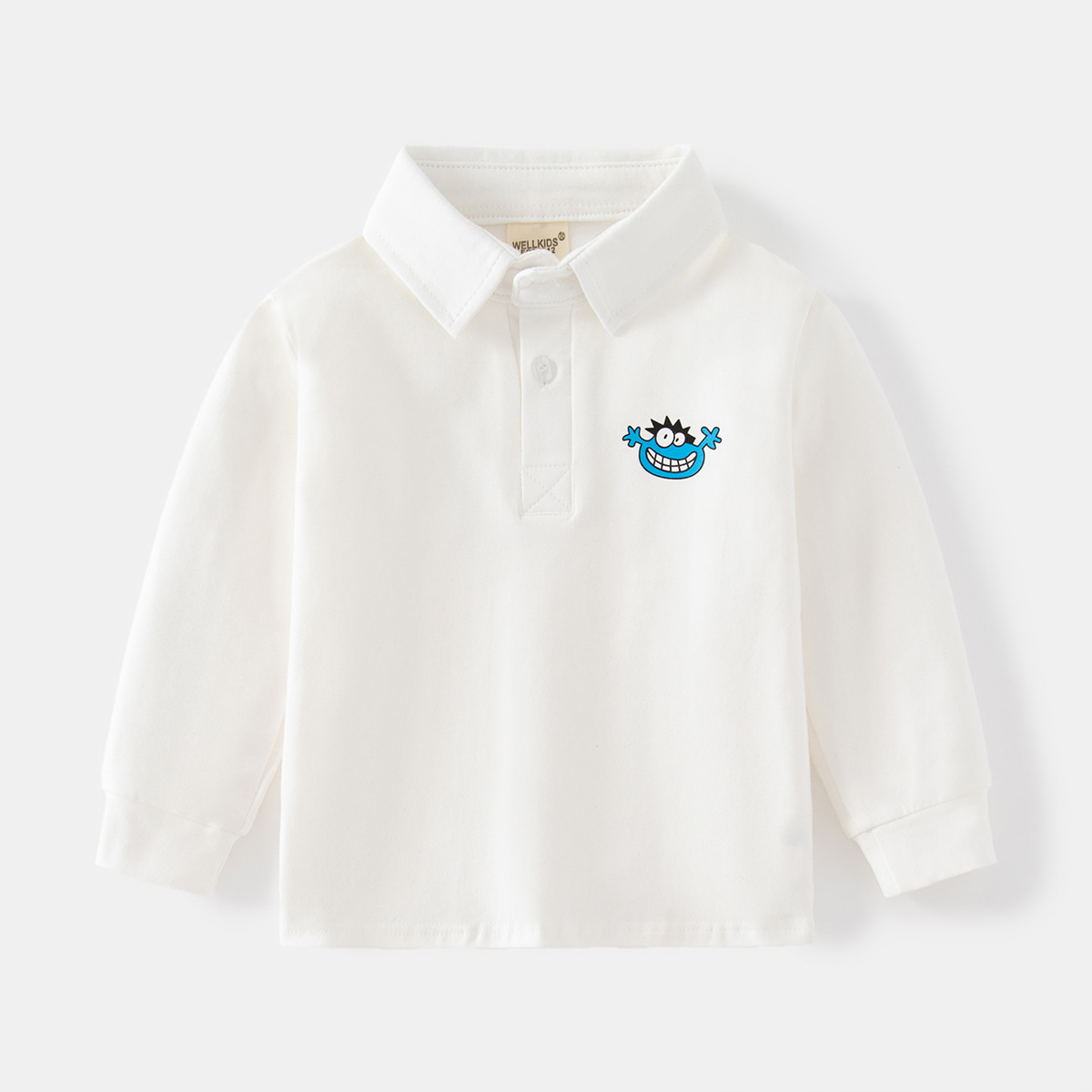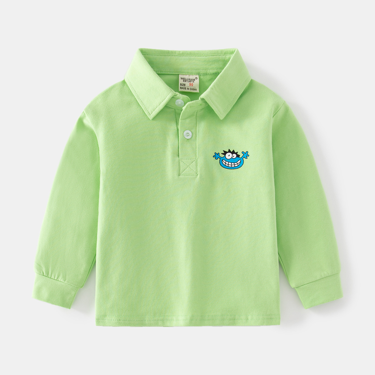Красивый осенний теплая рубашка-поло с длинными рукавами для мальчиков, модная рубашка с воротником-стойкой и маленькими животными с мультяшным принтом
