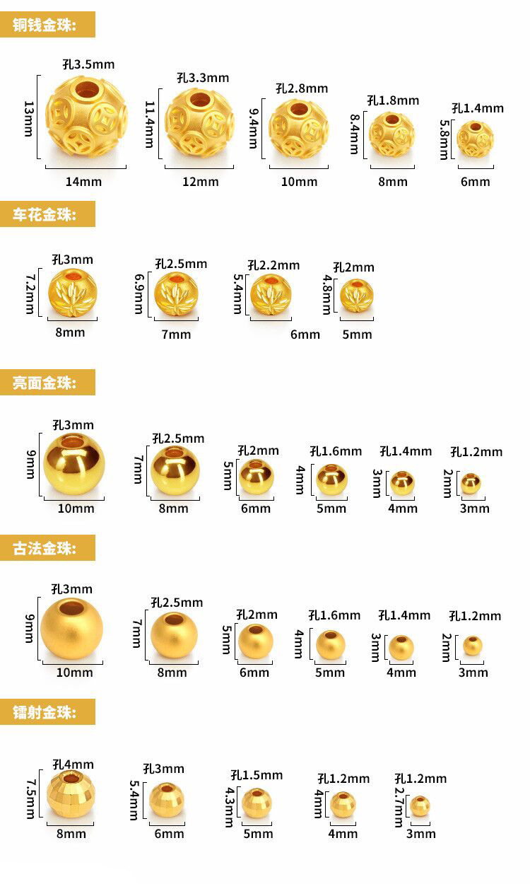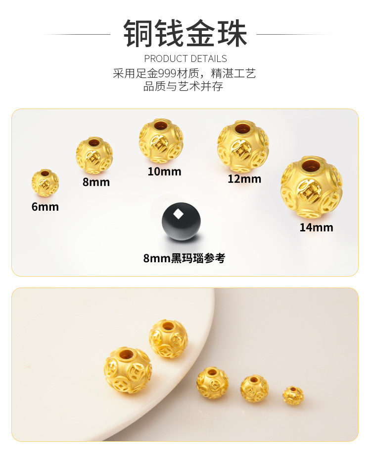 Qianxin ювелирные изделия 999 золотых бусин ювелирные аксессуары 3D твердые золотые бусины для переноса галстука 24K медные бусины живой дренаж