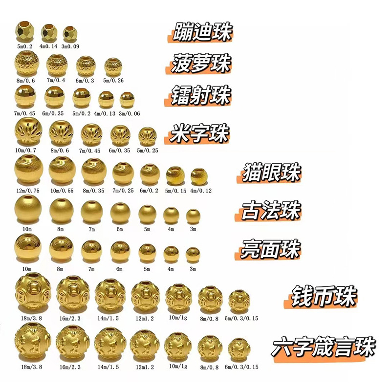 999 золотых гладких золотых бусин; 999 золотых матовых бусин; 999 золотые кошачьи глаза; 999 золотых денежных бусин