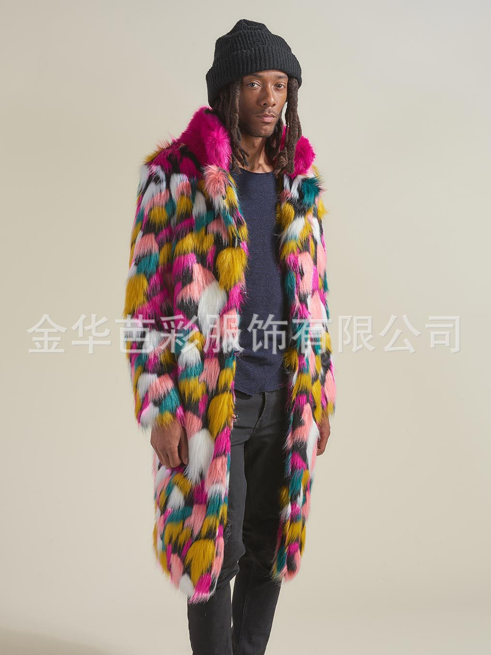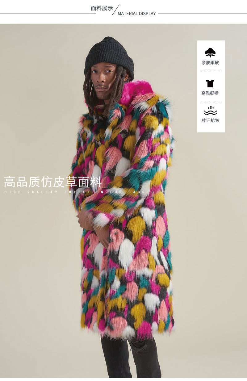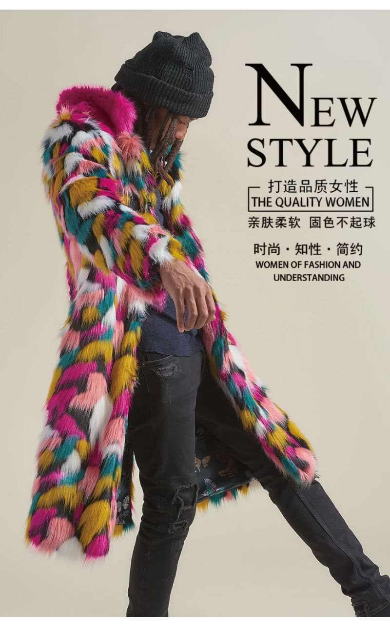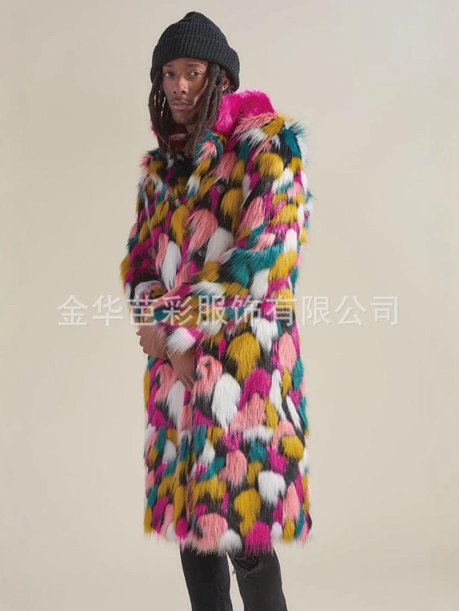 Пальто из лисьего меха Amazon Explosions, мужское длинное пальто с красочным меховым воротником, пальто из искусственного меха европейской и американской внешней торговли
