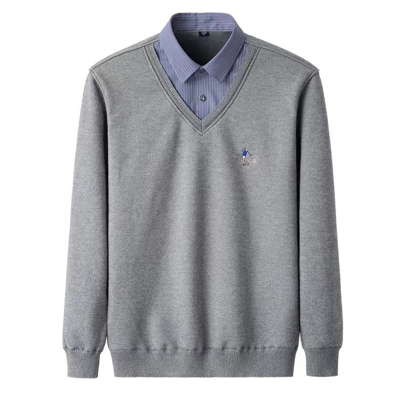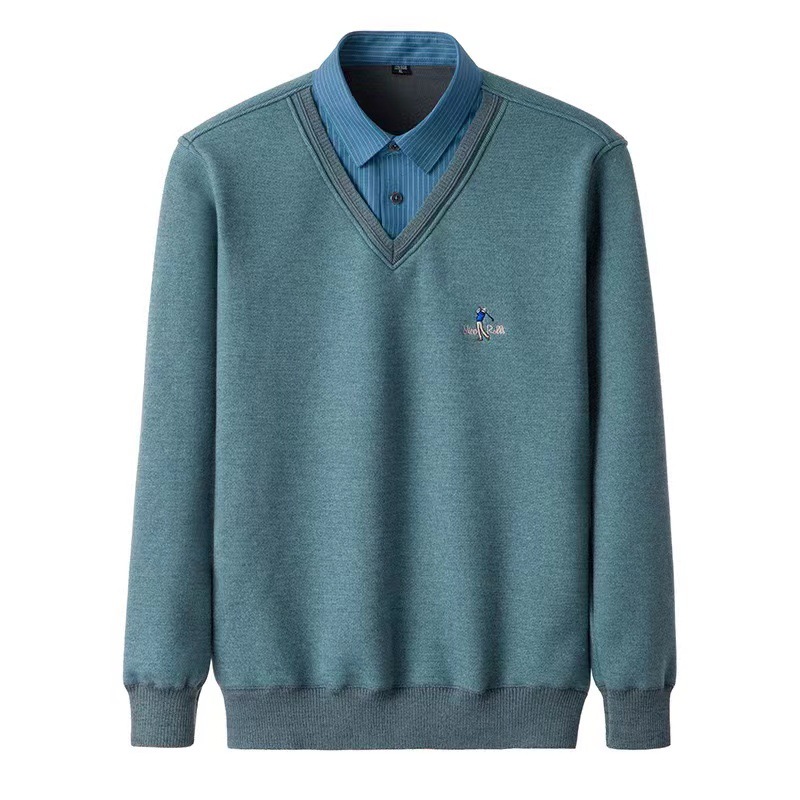 Зимний мужской шерстяной искусственный пуловер из двух частей на флисовой подкладке, утолщенный бесшовный пуловер с V-образным вырезом, теплый Повседневный свитер, свитер