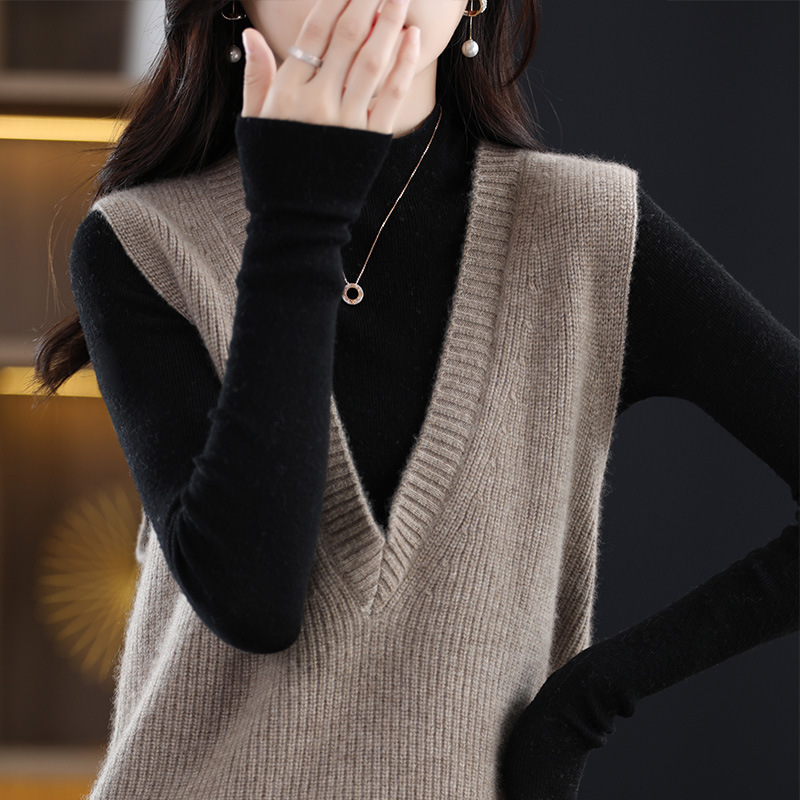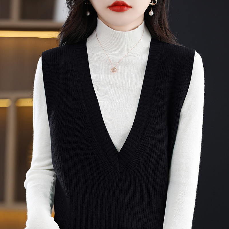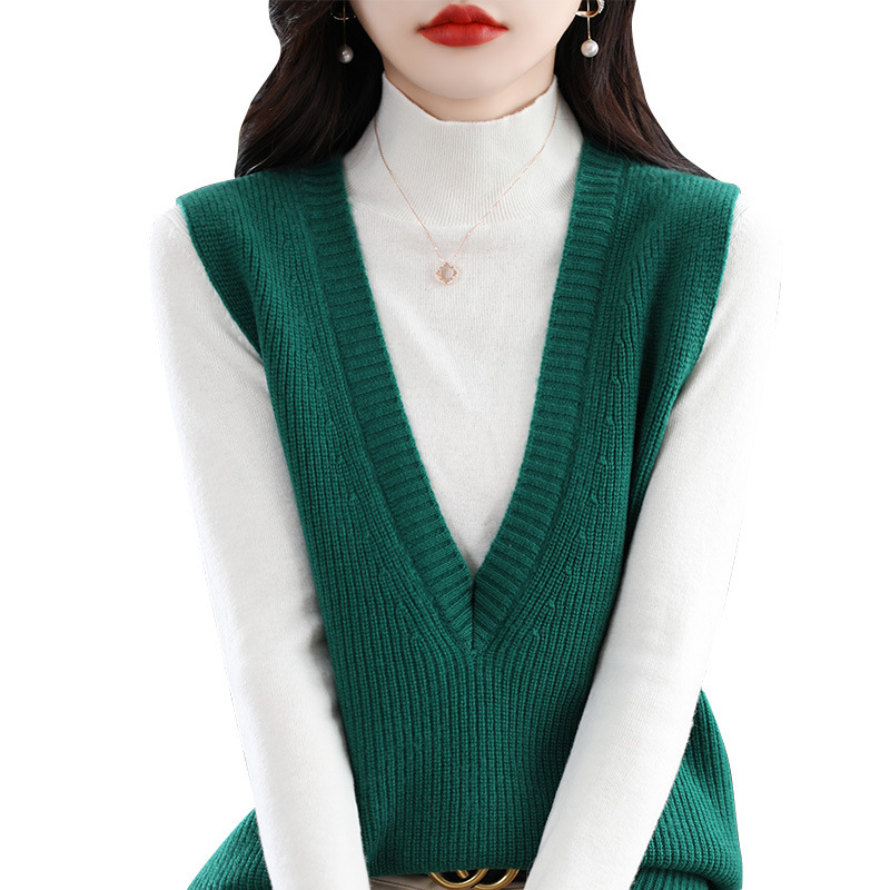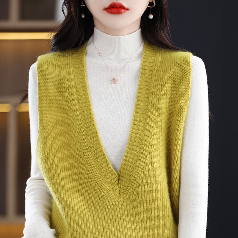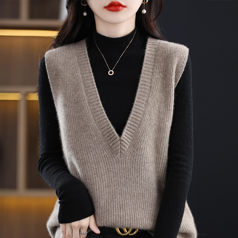 Женский трикотажный жилет с глубоким V-образным вырезом, осень 2025, свободный пуловер, универсальный облегающий свитер-жилет