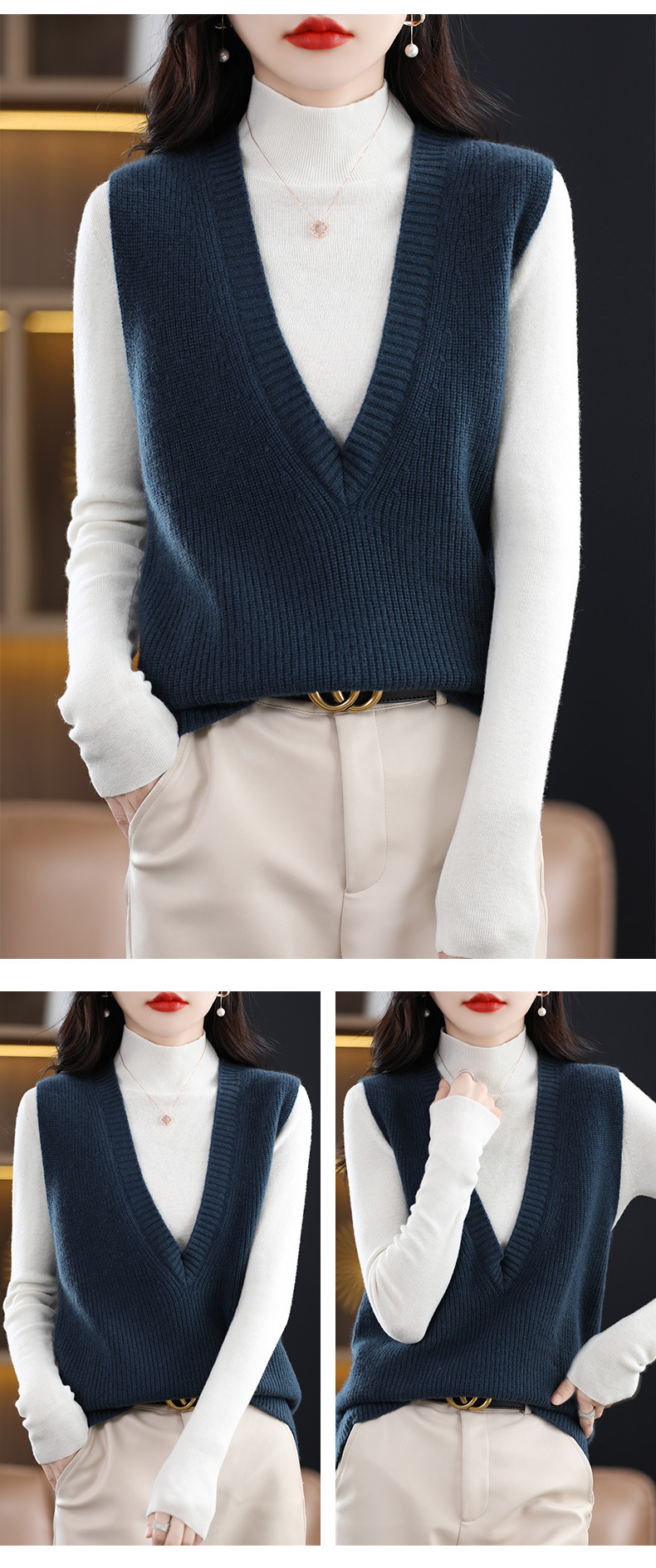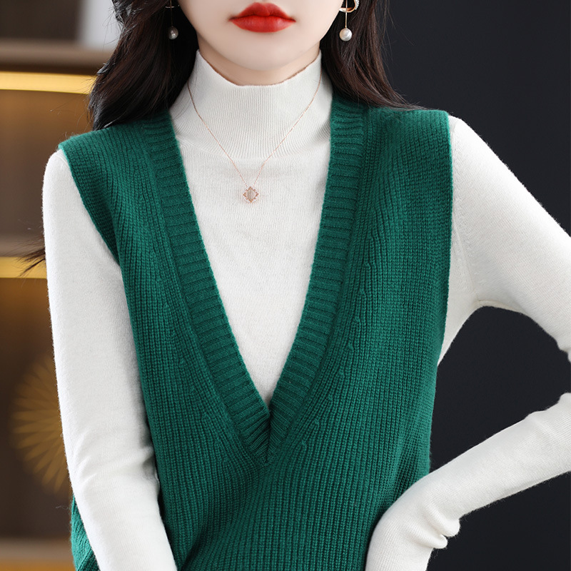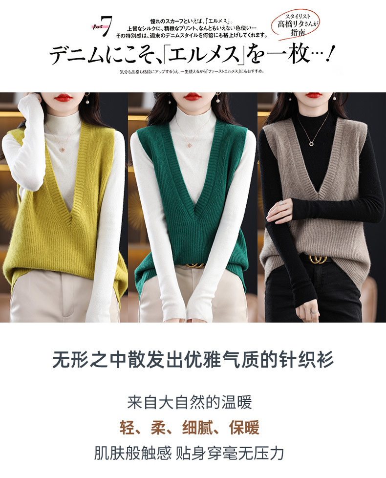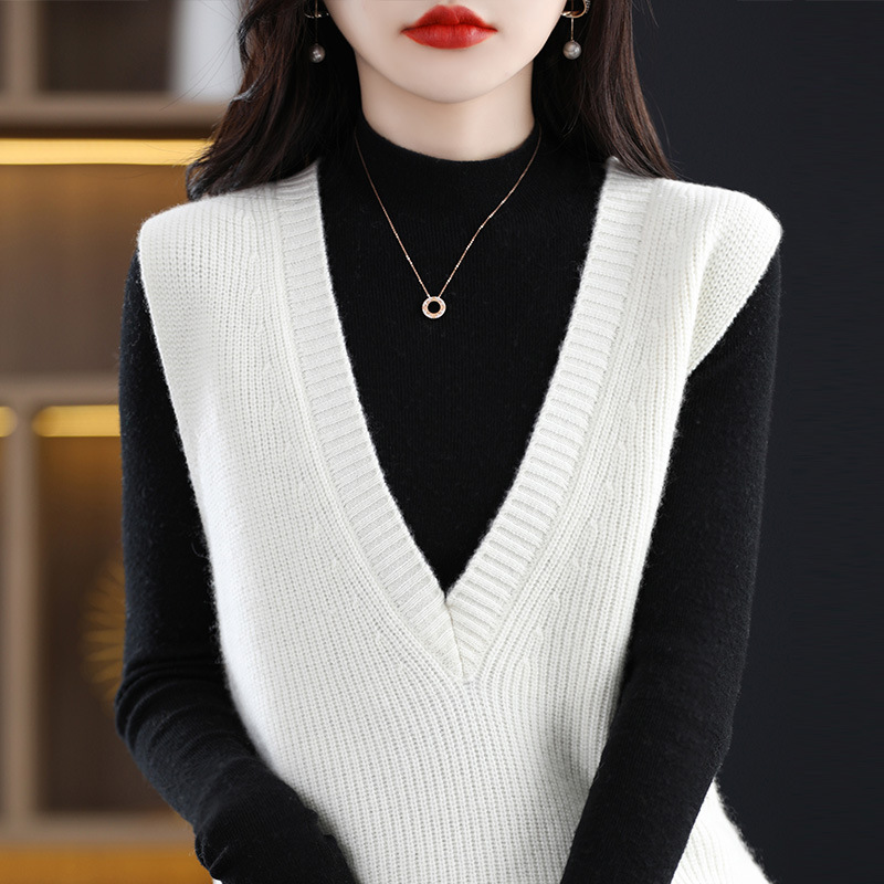 Женский трикотажный жилет с глубоким V-образным вырезом, осень 2025, свободный пуловер, универсальный облегающий свитер-жилет