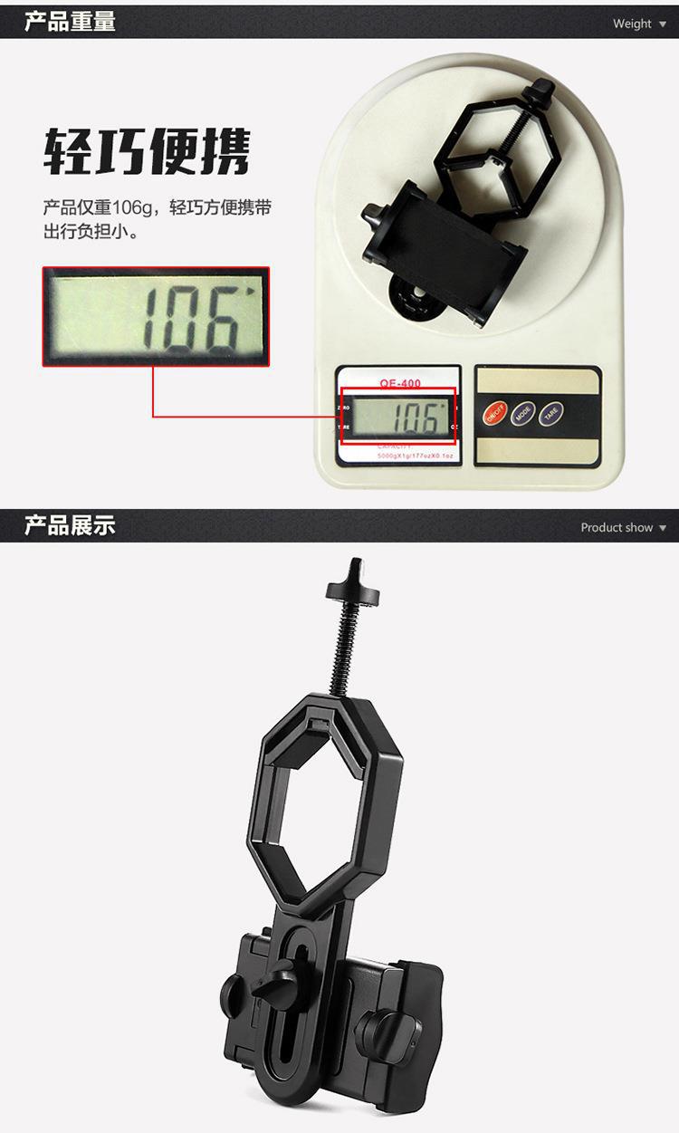 ABS手柄+金属拉杆底座 目镜范围:25-48mm,手机宽度:52-100mm默认彩盒包装。