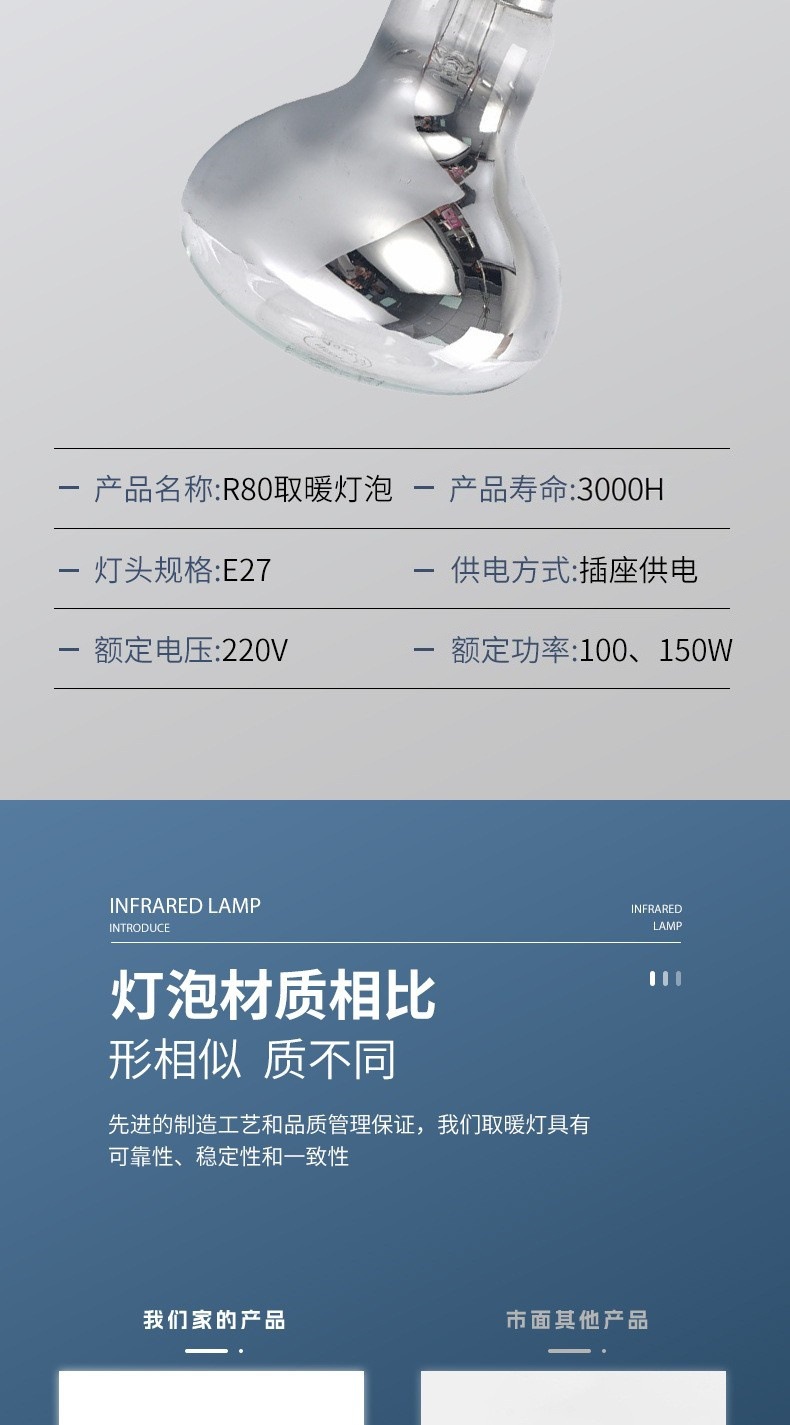 R80 нагревательные лампы 100W, 150W